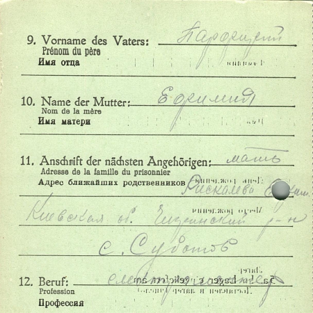 Пономаренко Алексей Николаевич, 16.03.1920 г. р, д. Бородино. Рядовой артиллерийского полка. Попал в плен 04.08.1941 в д. Пидвисоко, шталаг ХІ A.