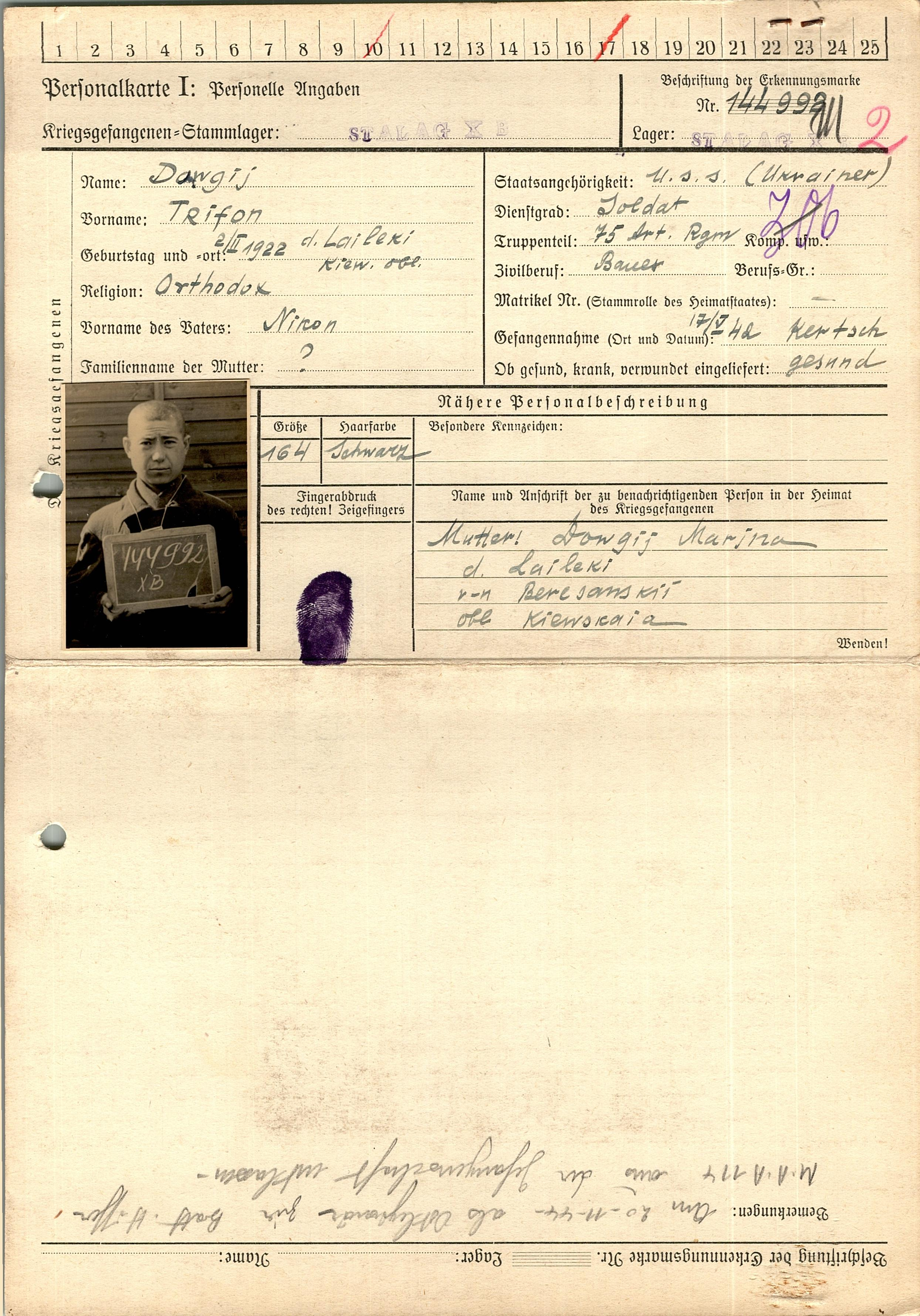 Военнопленные, трофейные карточки. Киевская обл.