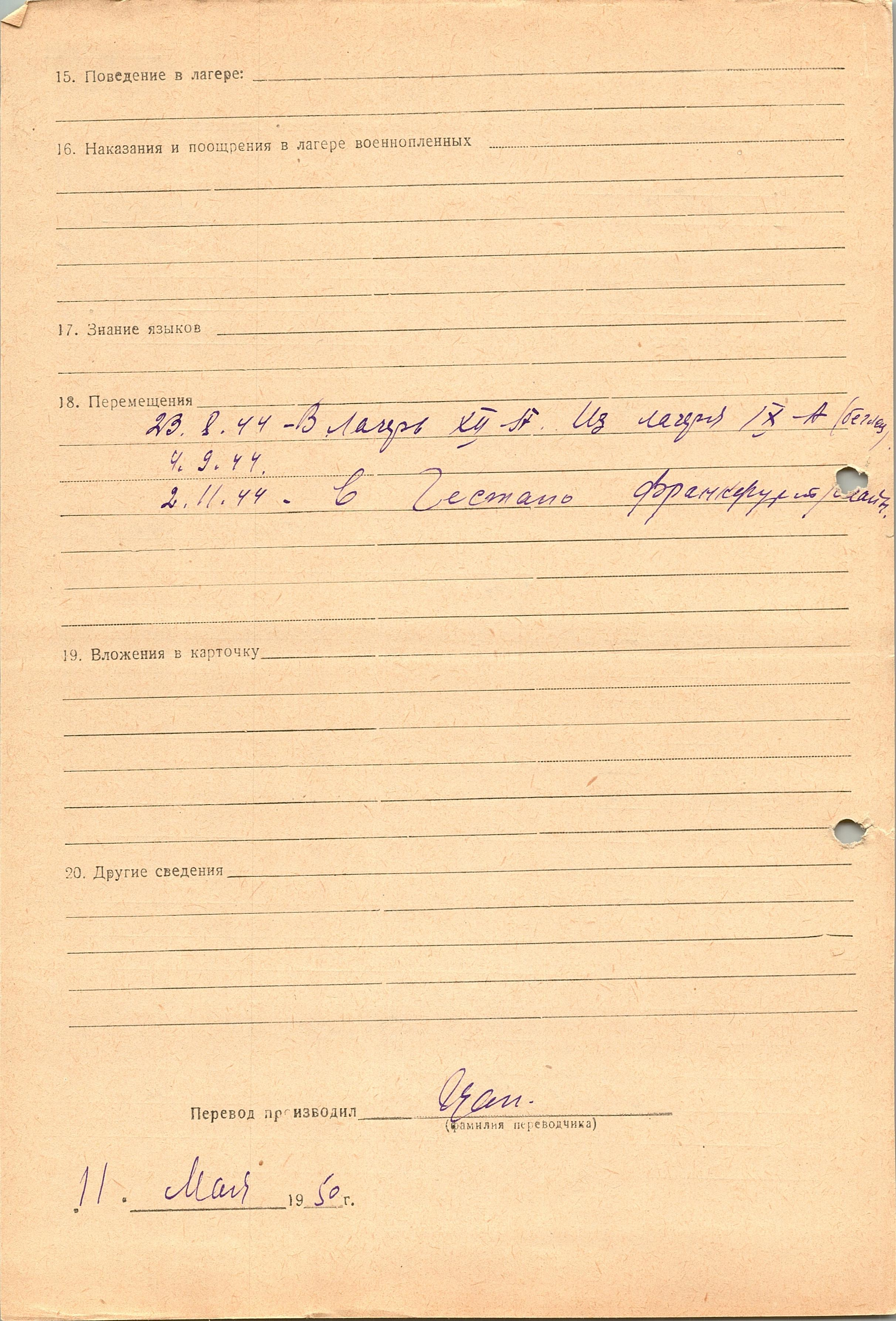 Военнопленные, трофейные карточки. Киевская обл.