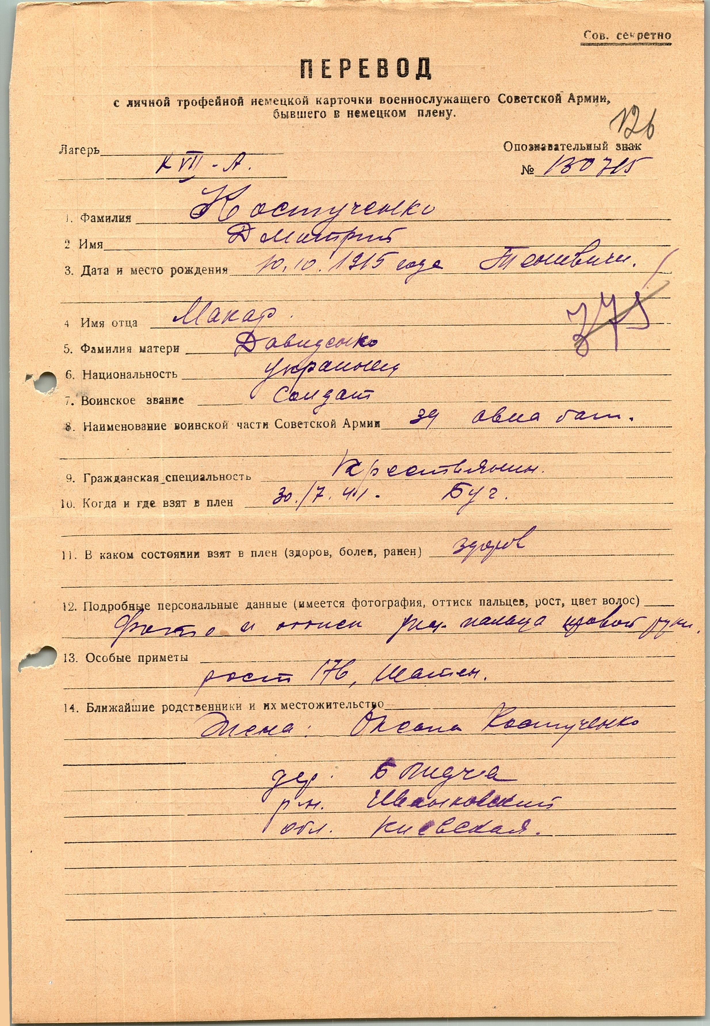 Военнопленные, трофейные карточки. Киевская обл.