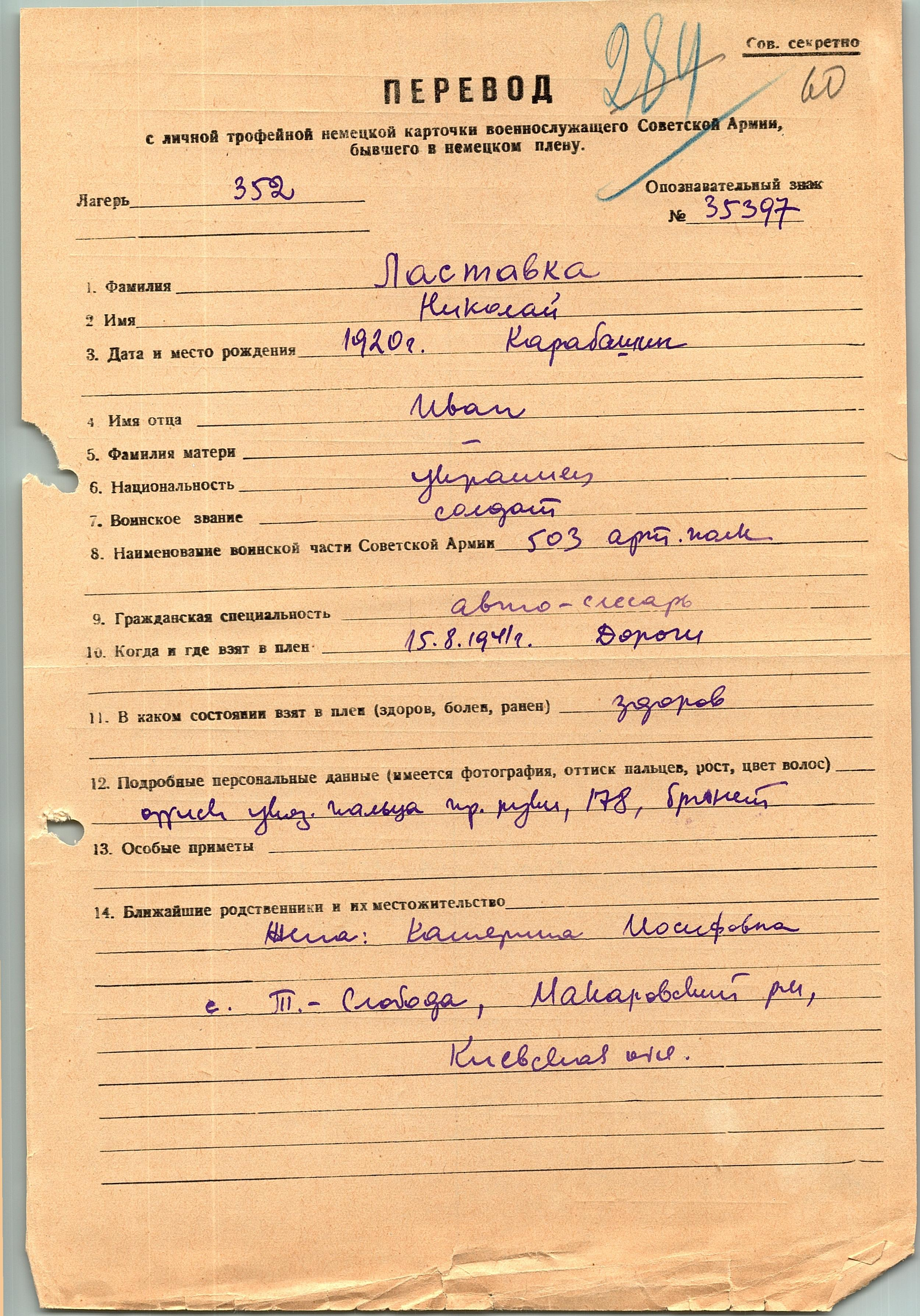 Военнопленные, трофейные карточки. Киевская обл.