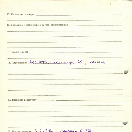 Набоков Михаил Степанович, 25.11.1919 г. р., с. Вороново. Рядовой, 300 мото-стрелковый полк. Попал в плен 18.09.- в Боратино, шталаг ІХ А.