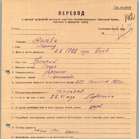 Нильва Леонид Григорьевич, 02.08.1922 г. р., г. Киев. Лейтенант, 299 батальйон связи. Попал в плен 08.08.1941 года в с. Подвысокое. 02.03.1942 передан в СД.