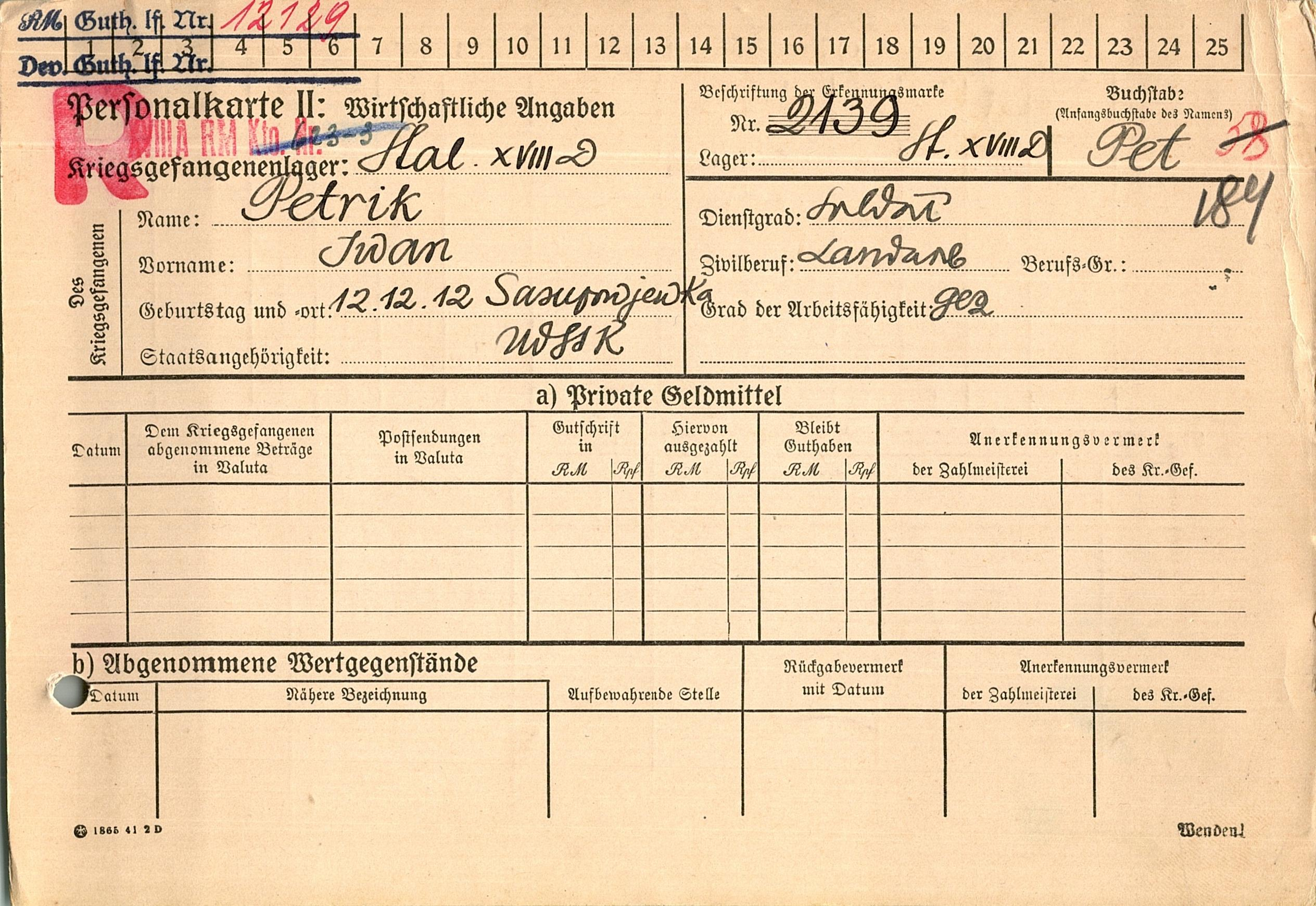 Военнопленные, трофейные карточки. Киевская обл.