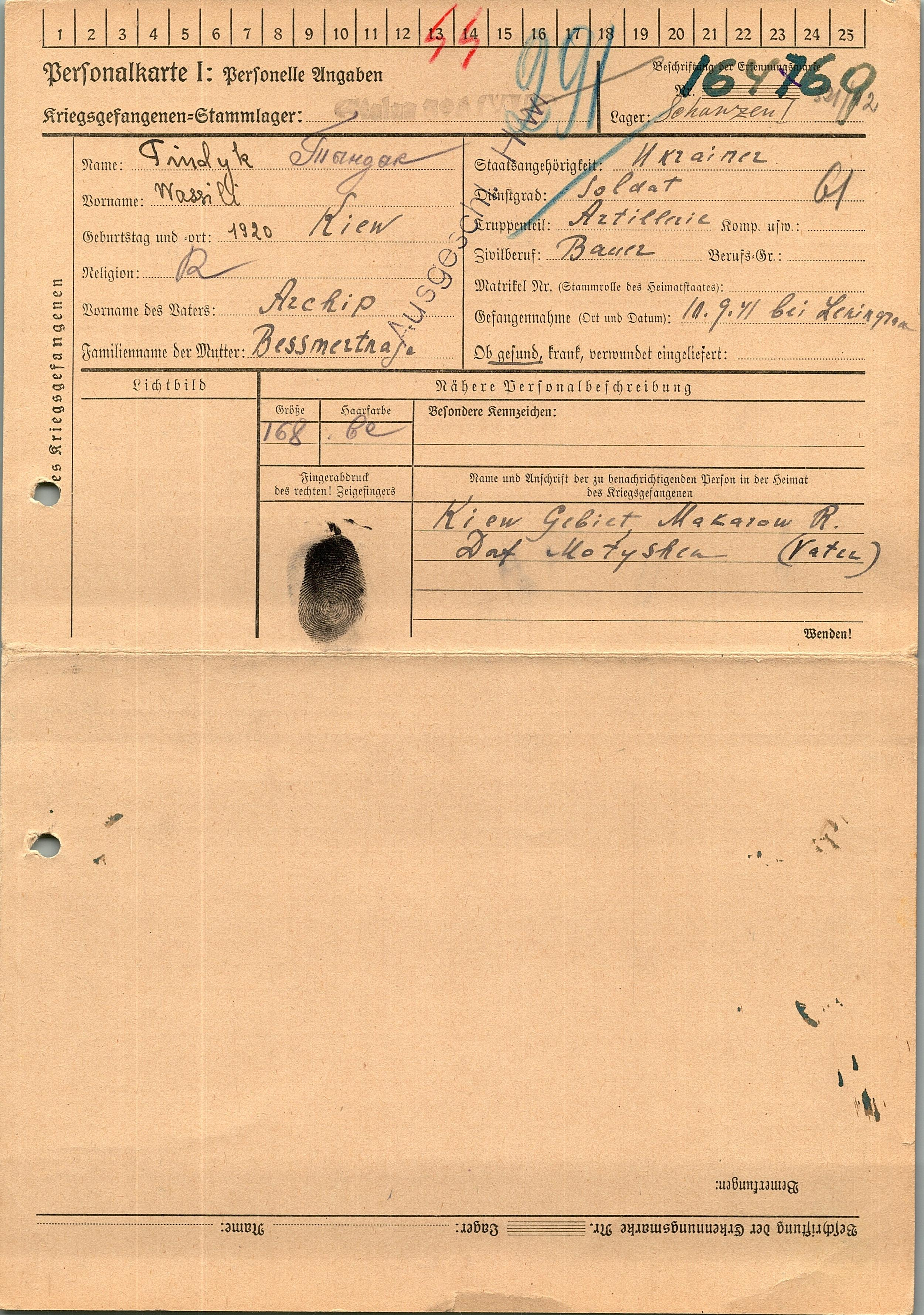 Военнопленные, трофейные карточки. Киевская обл.