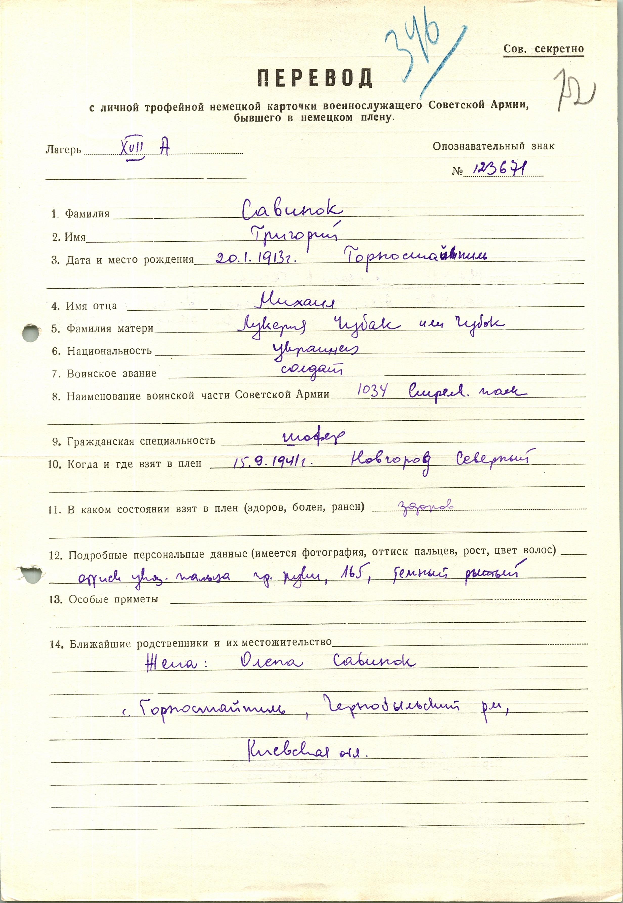 Военнопленные, трофейные карточки. Киевская обл.
