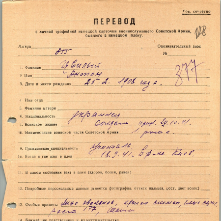 Цвилый Антон, 25.02.1908 г. р. Рядовой, 1 рота. Попал 18.09.1941 г. в районе Киева, шталаг 355. 11.03.1943 тз плена отчислен.