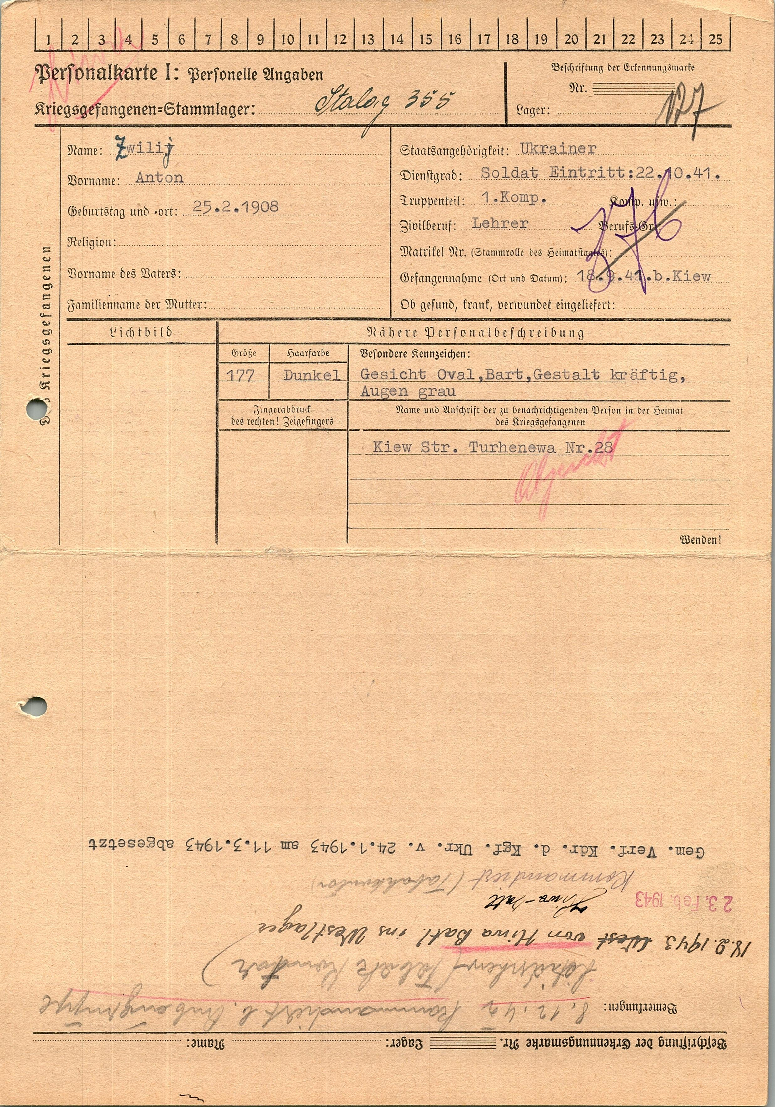 Военнопленные, трофейные карточки. Киевская обл.