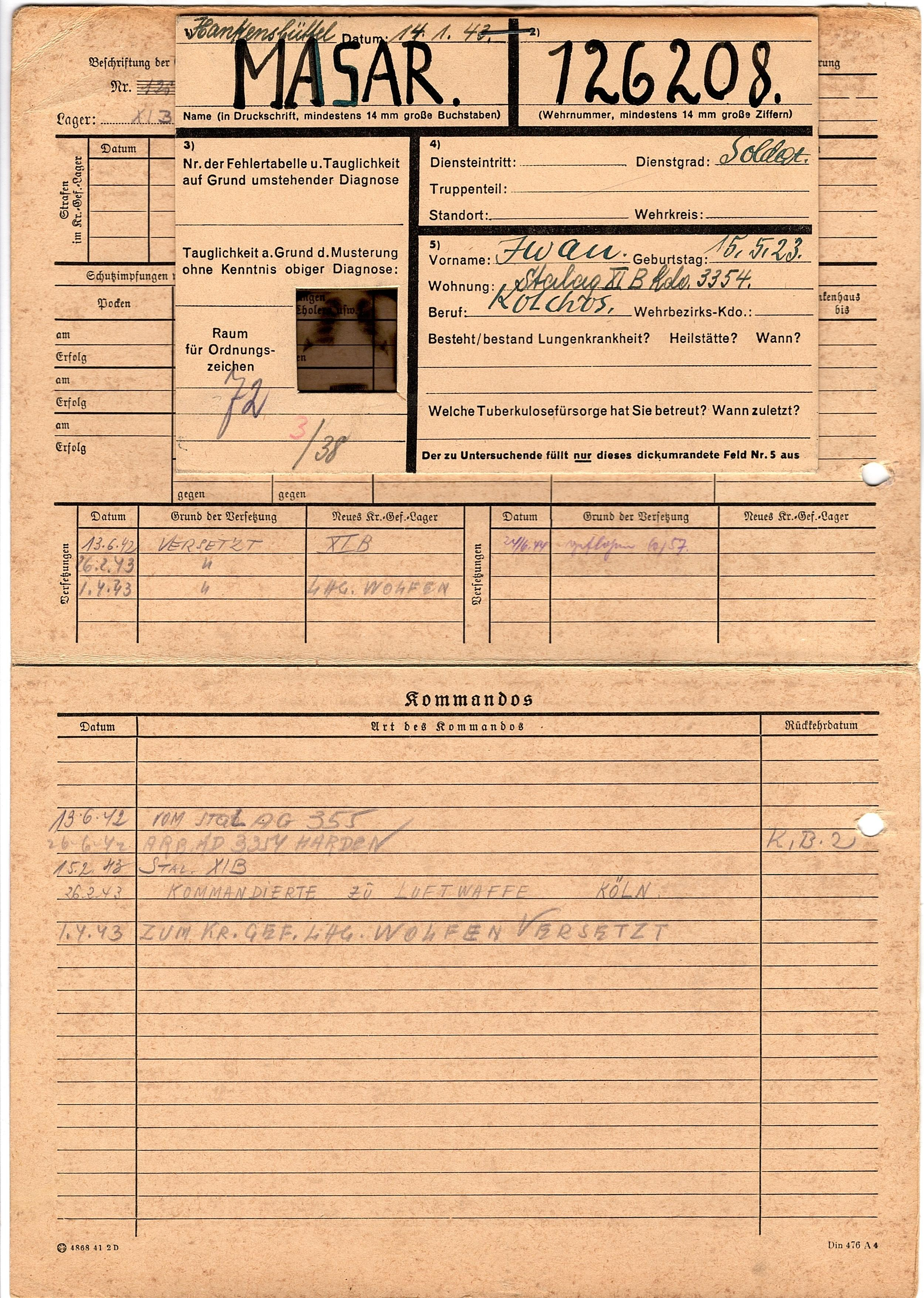 Военнопленные, трофейные карточки. Киевская обл.
