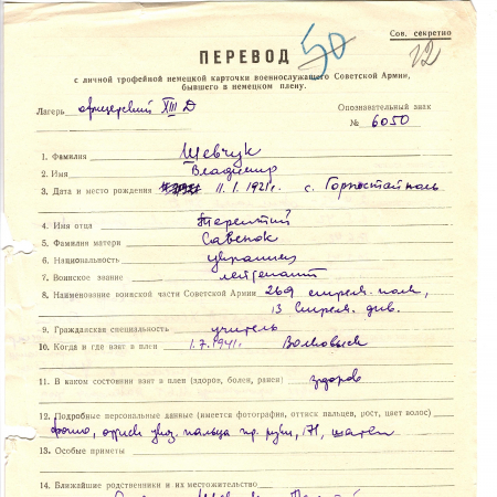 Шевчук Владимир Терентиевич, 11.01.1921 г.р., с. Горностайполь. Лейтенант, 269 стрелковый полк, 13 стрелковая дивизия. Попал в плен 01.07.1941 в Волковыске в шталаг XIII Д. 17.06.1942 был переведен в лагерь VI Г, 20.03.1943 в лагерь XI Б.