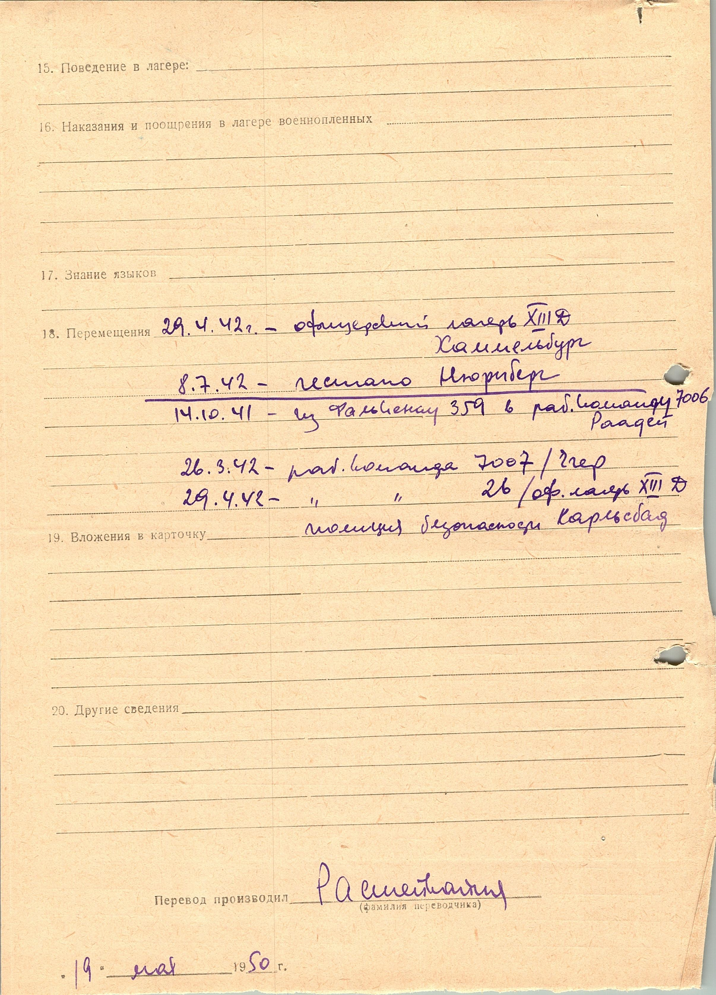 Военнопленные, трофейные карточки. Киевская обл.