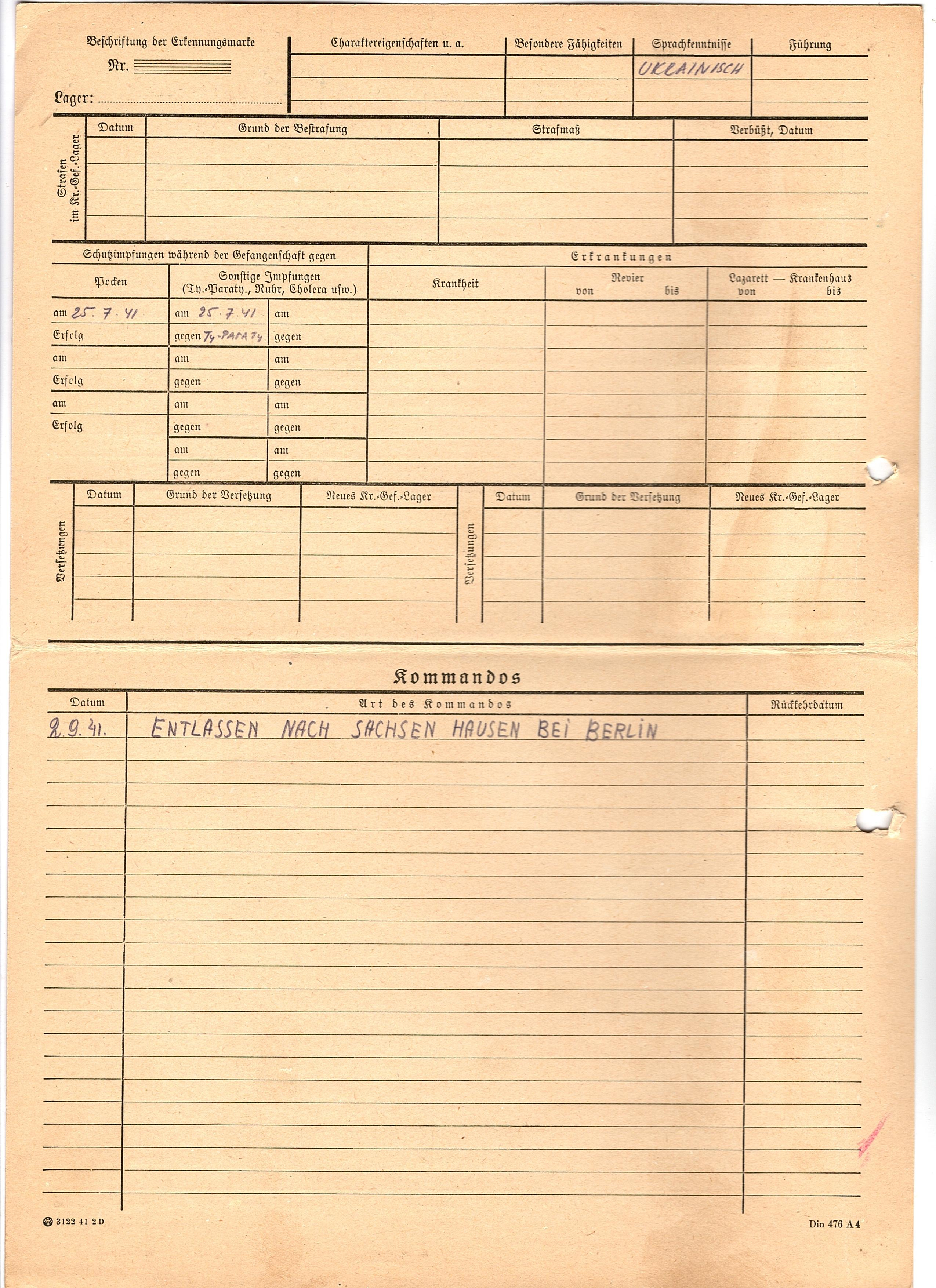 Военнопленные, трофейные карточки. Киевская обл.