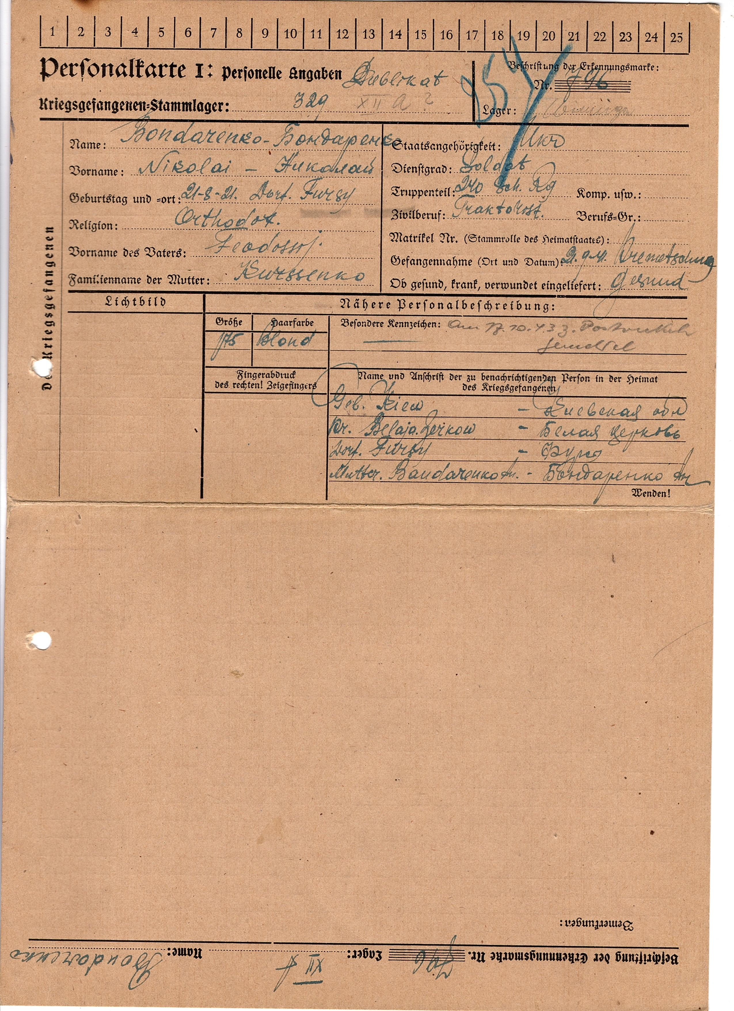 Военнопленные, трофейные карточки. Киевская обл.