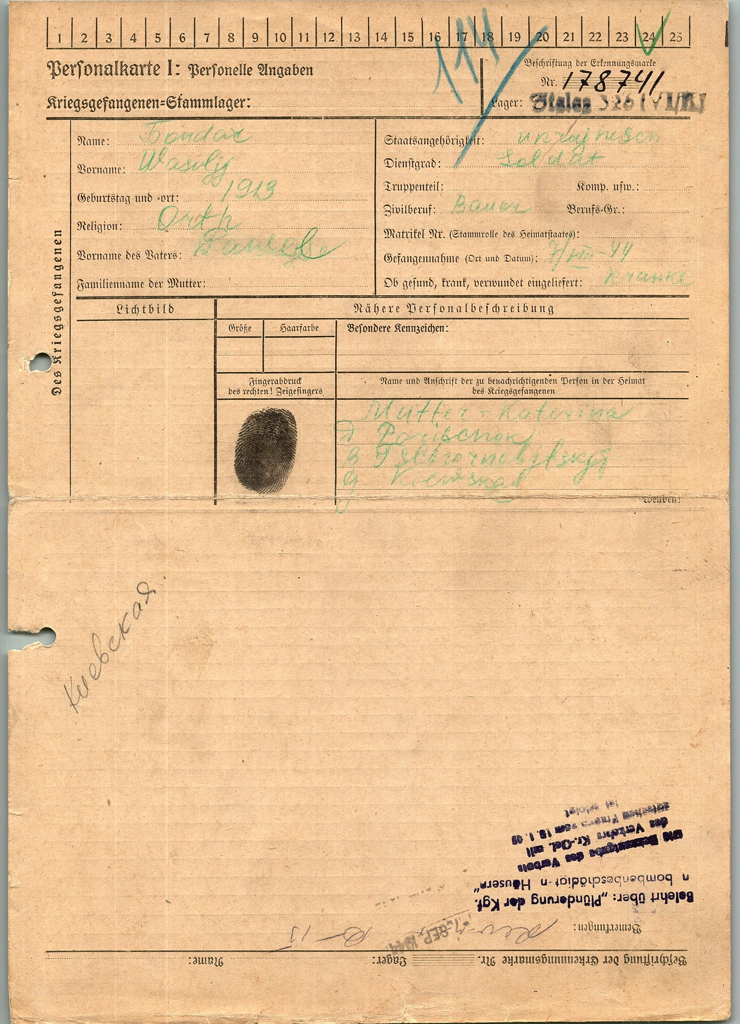 Военнопленные, трофейные карточки. Киевская обл.