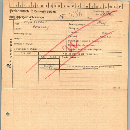 Викторов Анатолий Петрович, 20.11.1896 г. р., г. Киев. Рядовой, 807 полк. Попал в плен 11.07.1942 в Миллерово, шталаг VI Ц. 12.05.1943 был переведен в лагерь VI K, 03.05.1943 - в Фуллен, 17.05.1943 - в шталаг VI K.