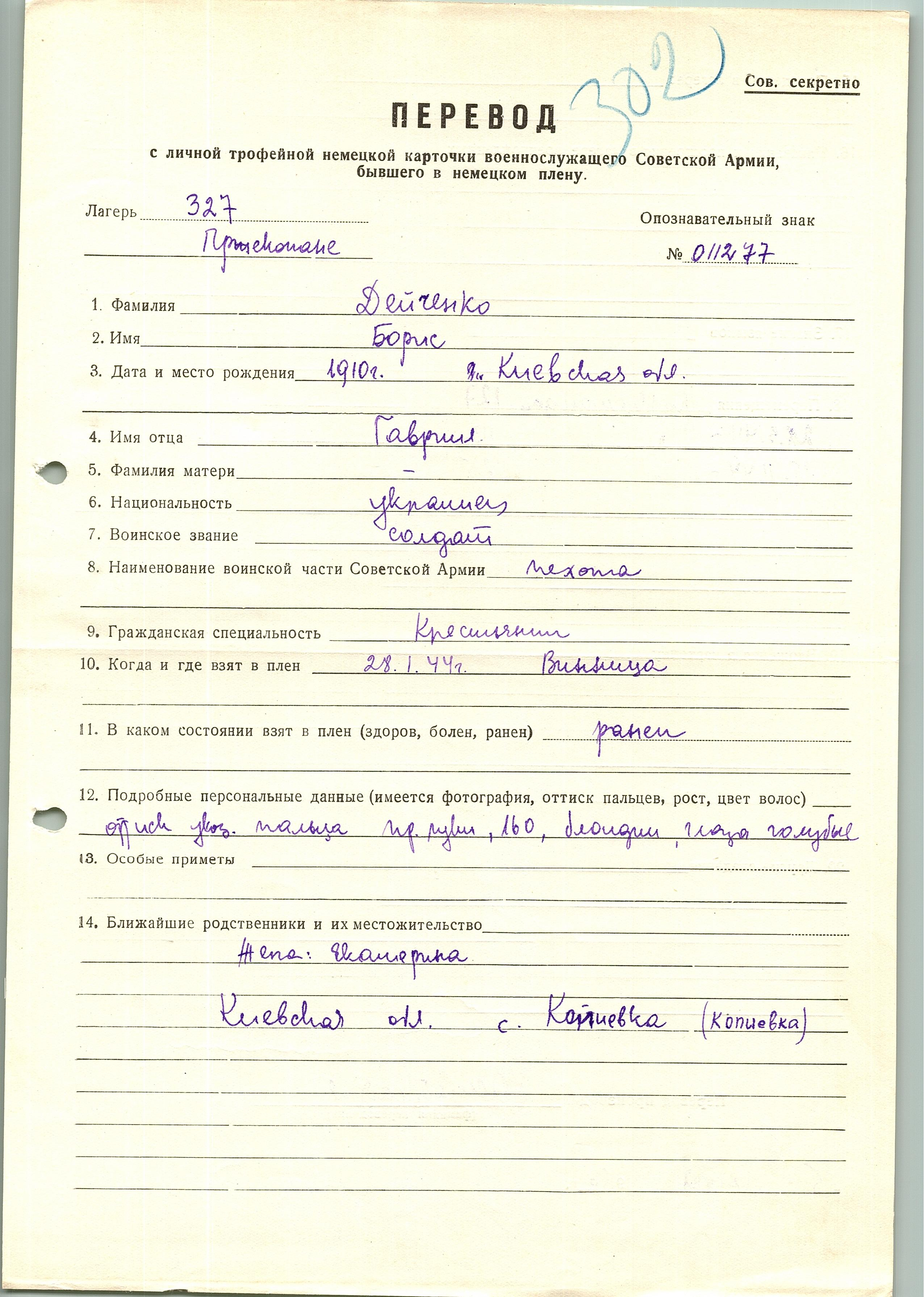 Военнопленные, трофейные карточки. Киевская обл.