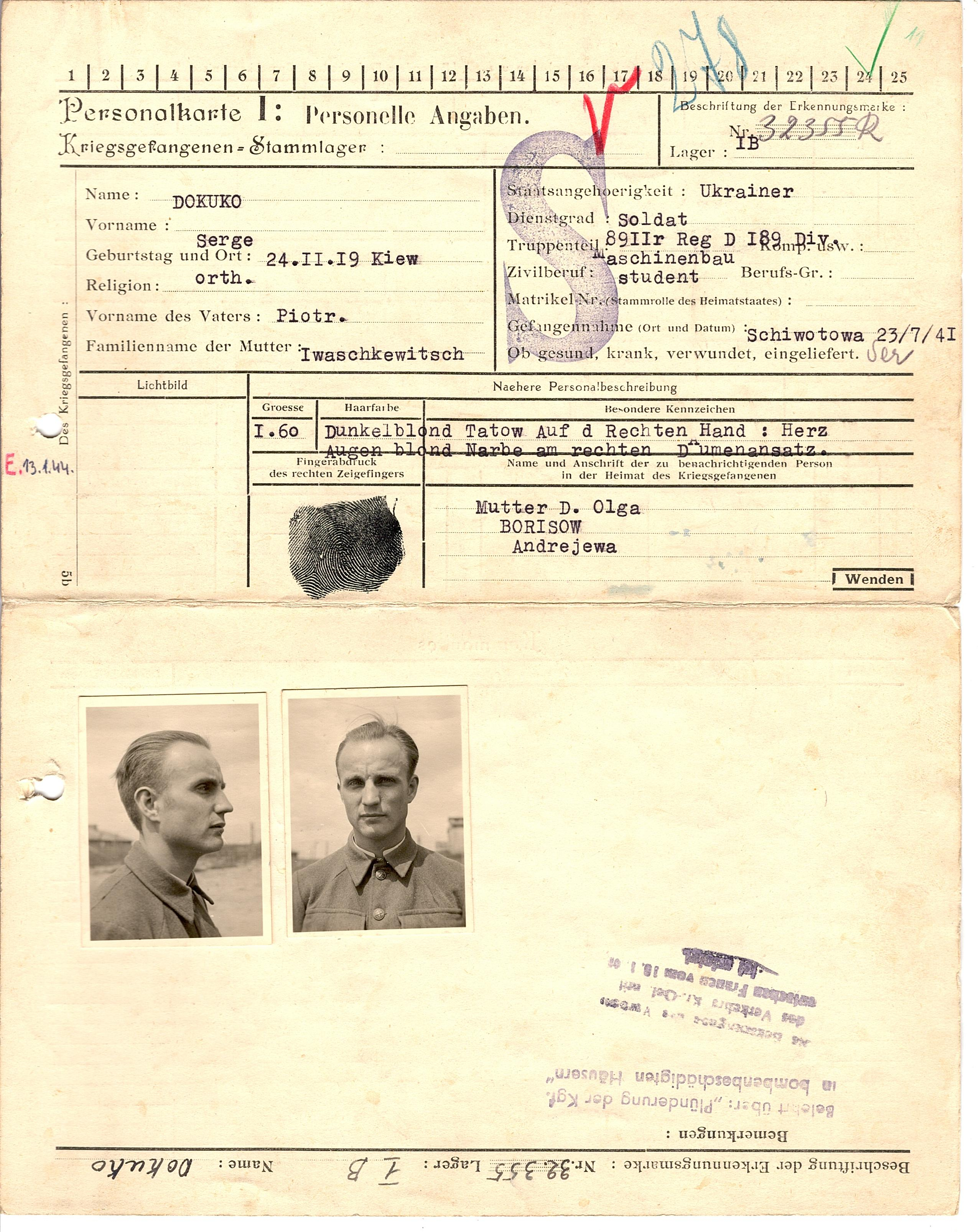 Военнопленные, трофейные карточки. Киевская обл.