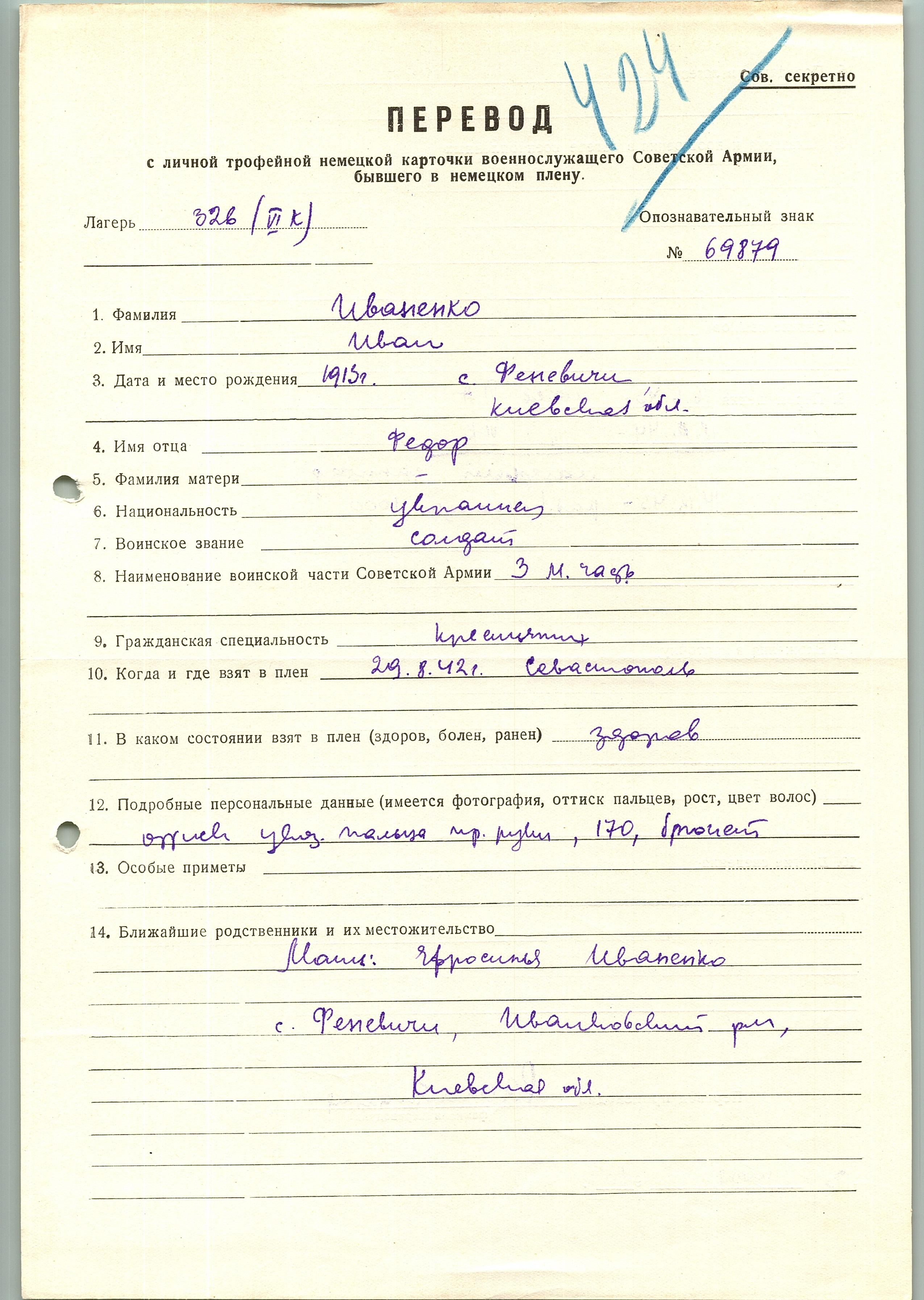 Военнопленные, трофейные карточки. Киевская обл.