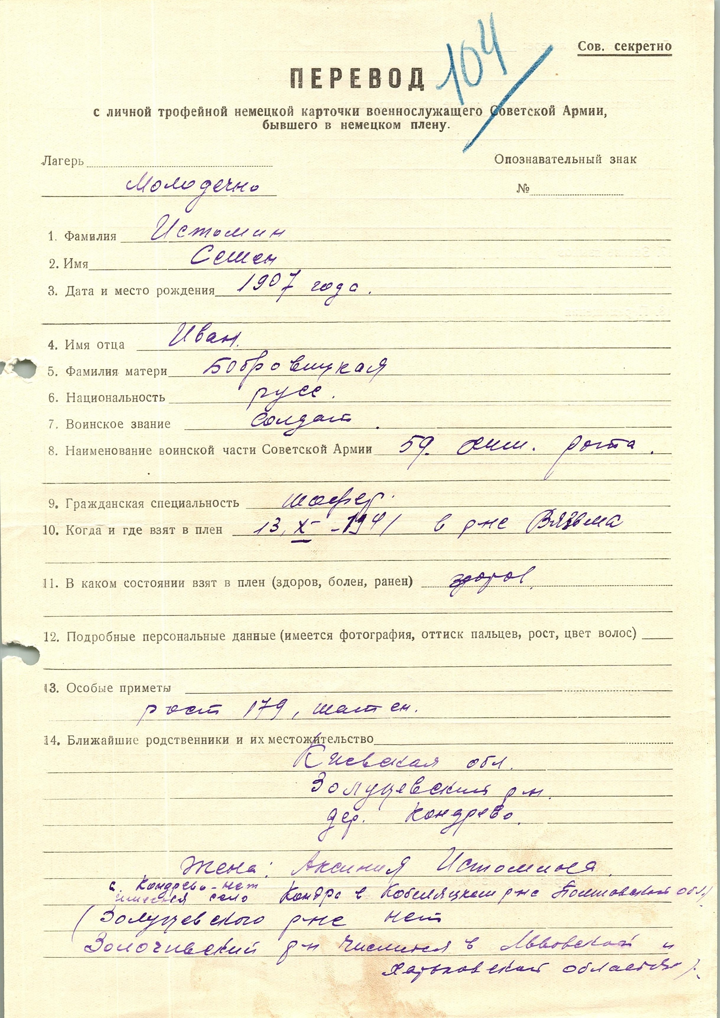 Военнопленные, трофейные карточки. Киевская обл.