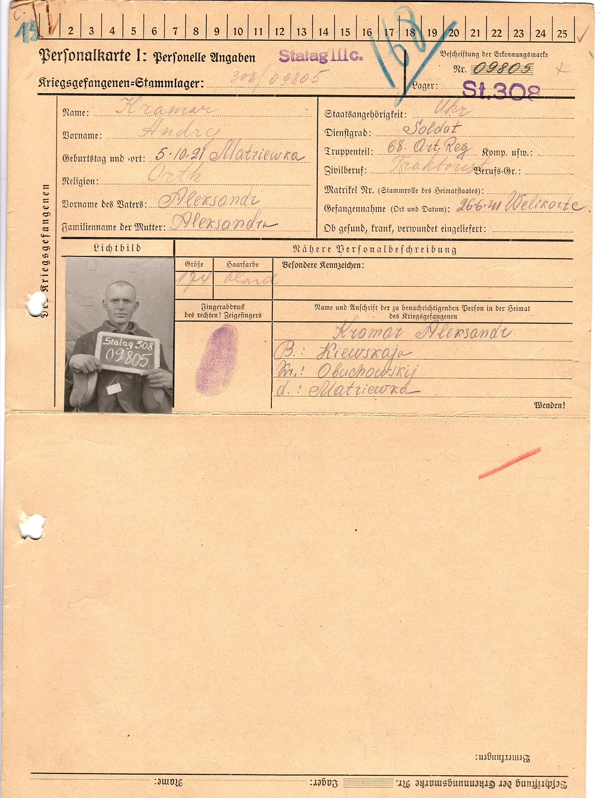 Военнопленные, трофейные карточки. Киевская обл.