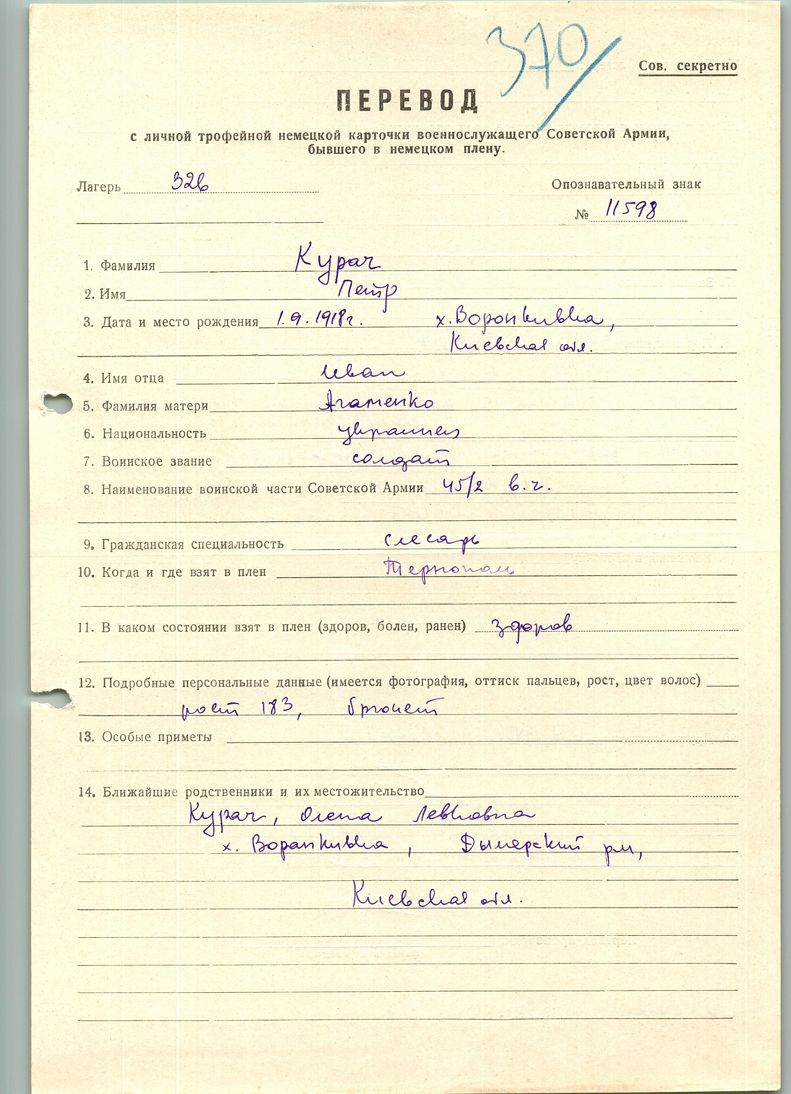 Военнопленные, трофейные карточки. Киевская обл.