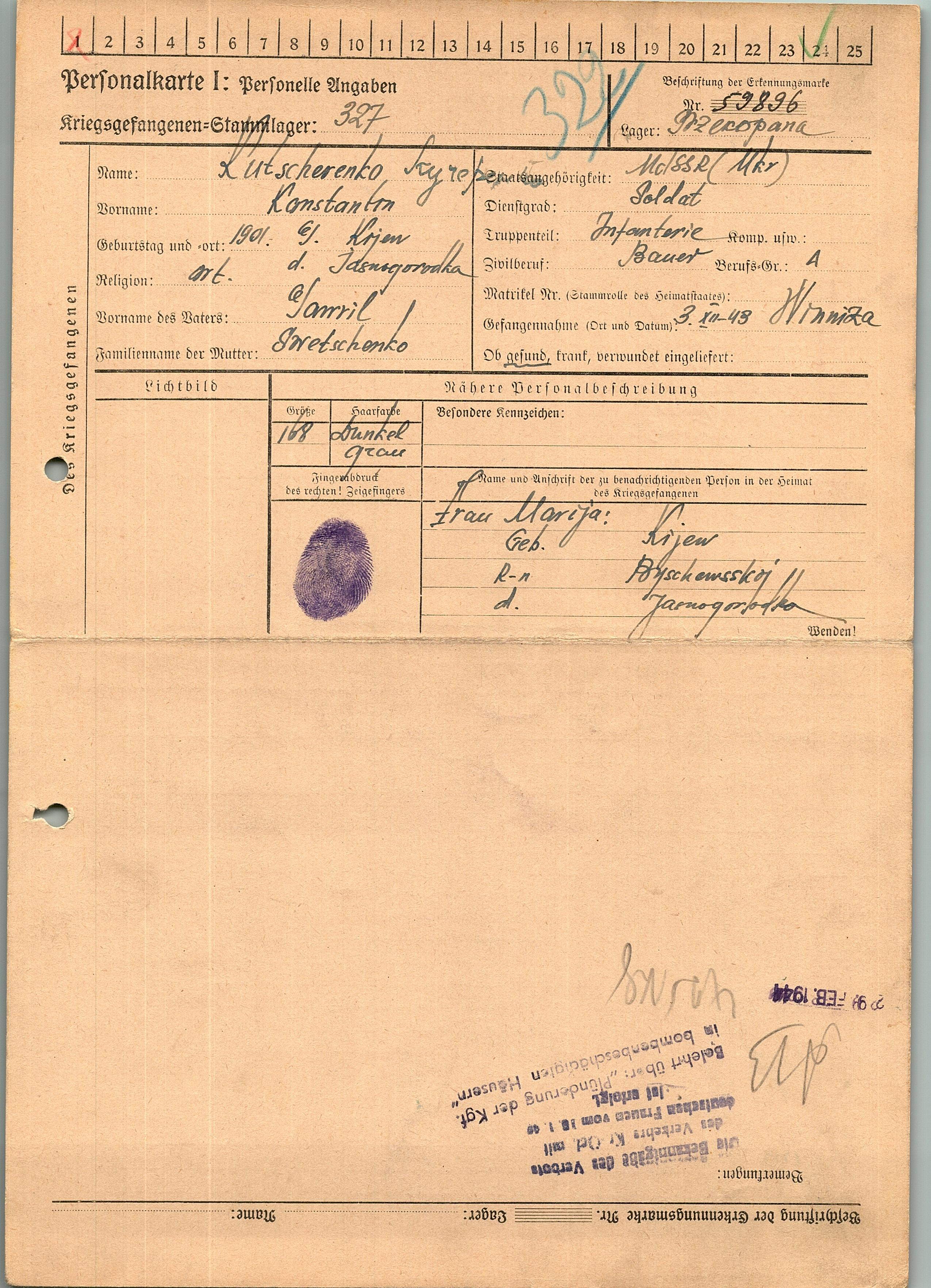 Военнопленные, трофейные карточки. Киевская обл.