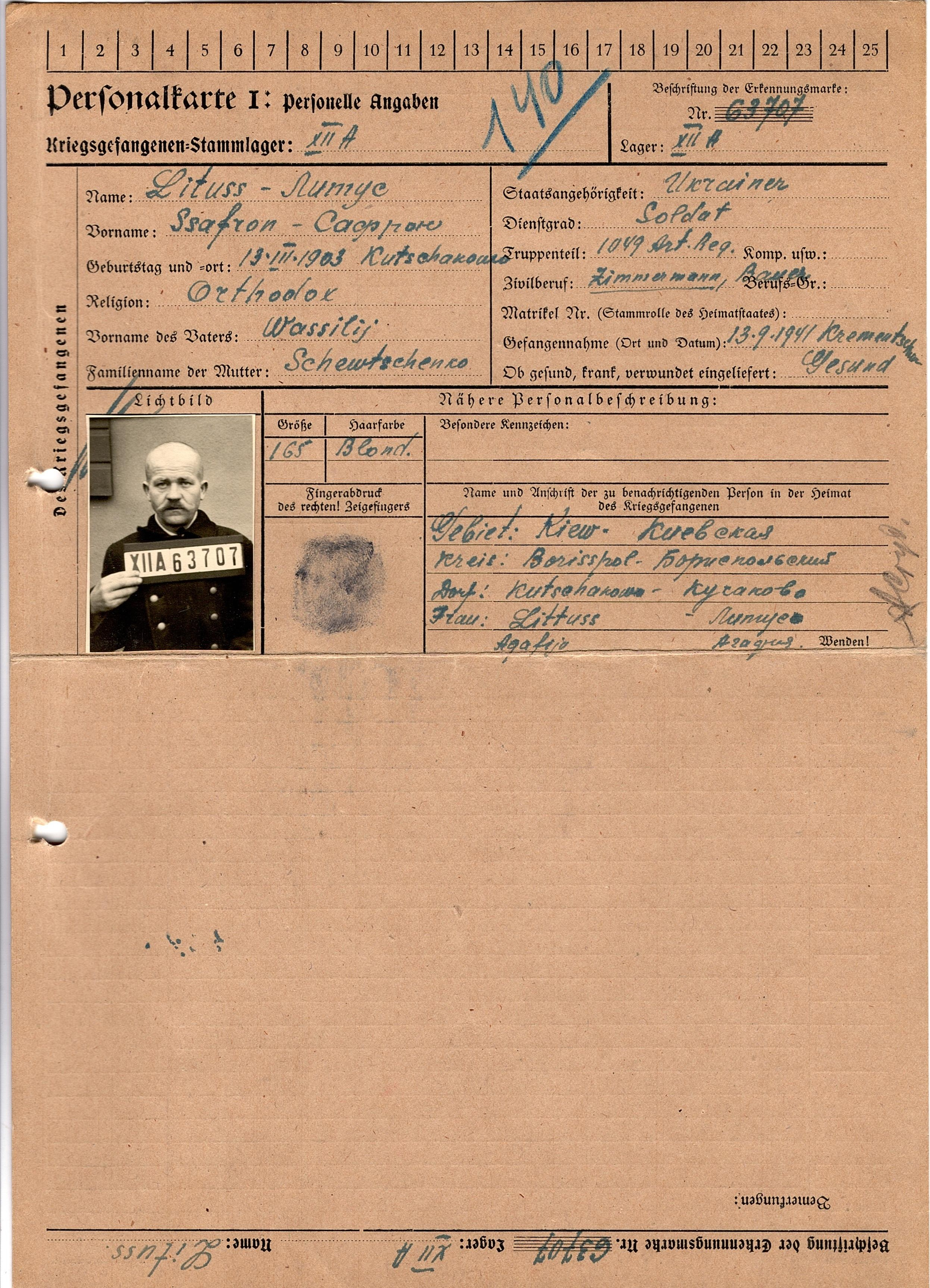 Военнопленные, трофейные карточки. Киевская обл.