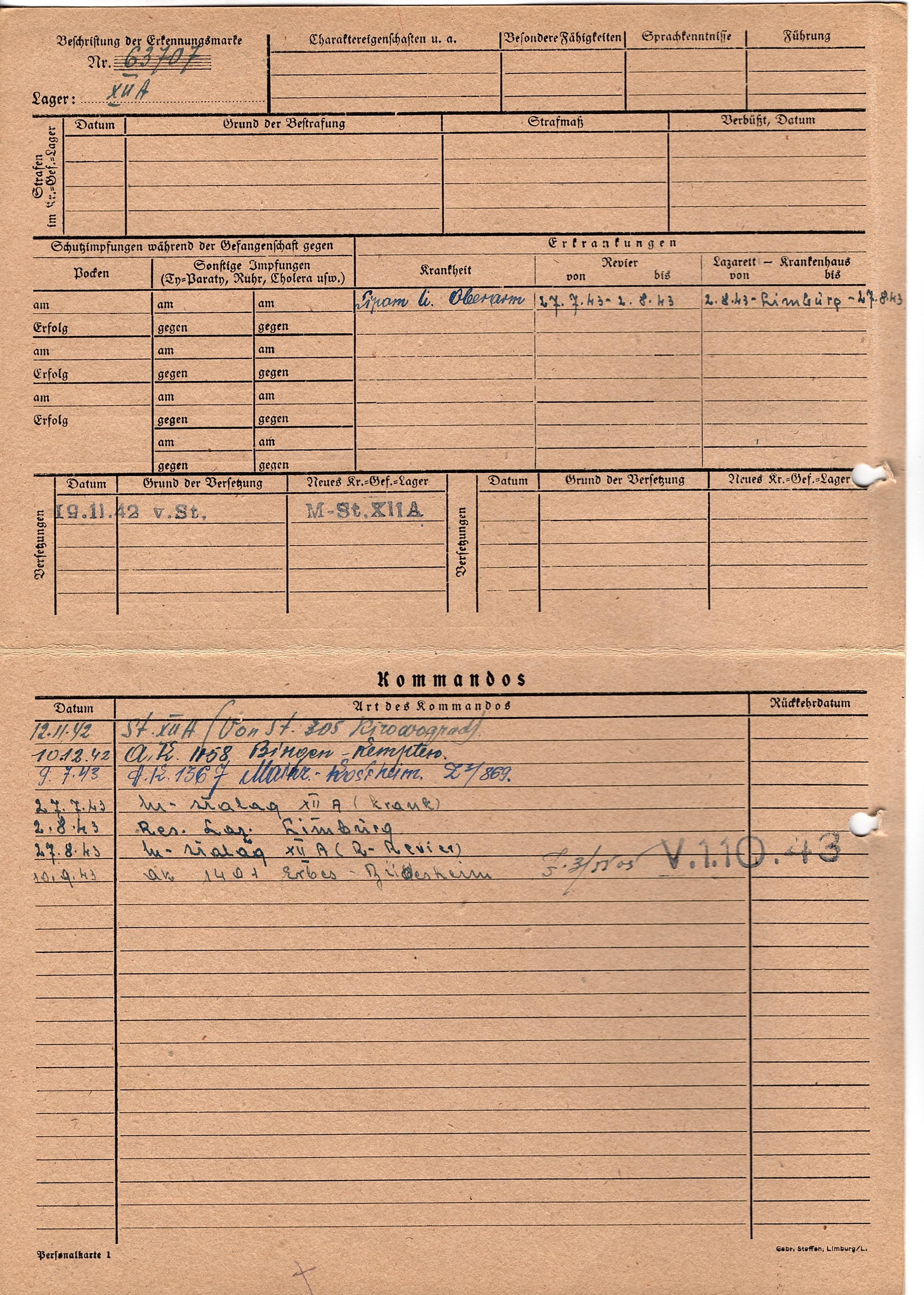 Военнопленные, трофейные карточки. Киевская обл.