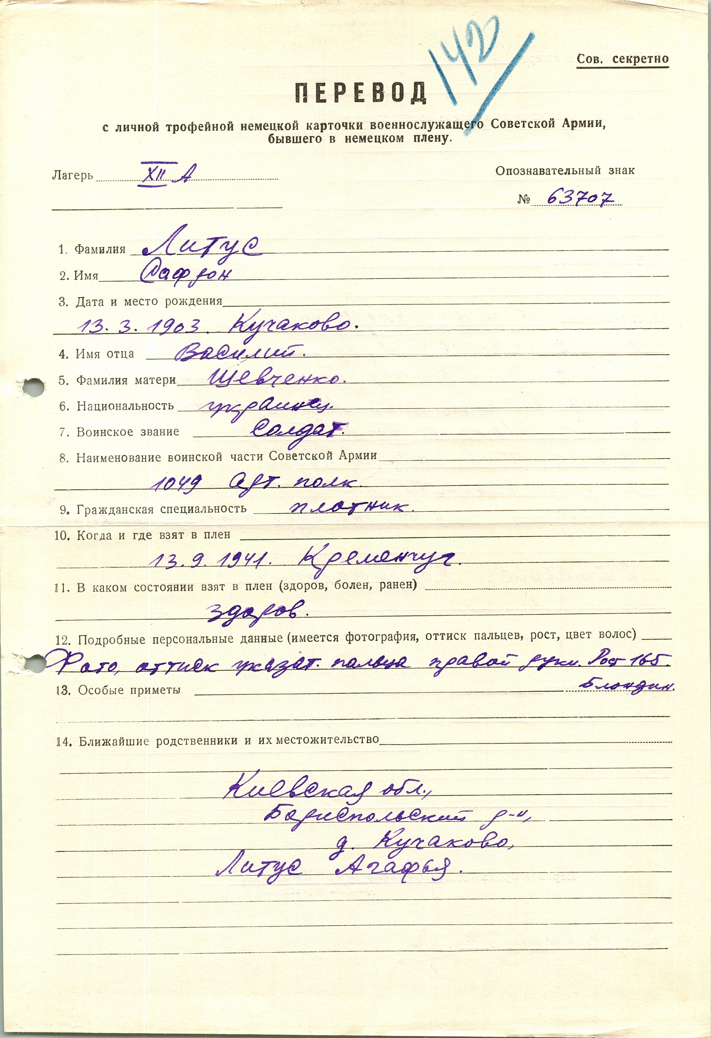 Военнопленные, трофейные карточки. Киевская обл.