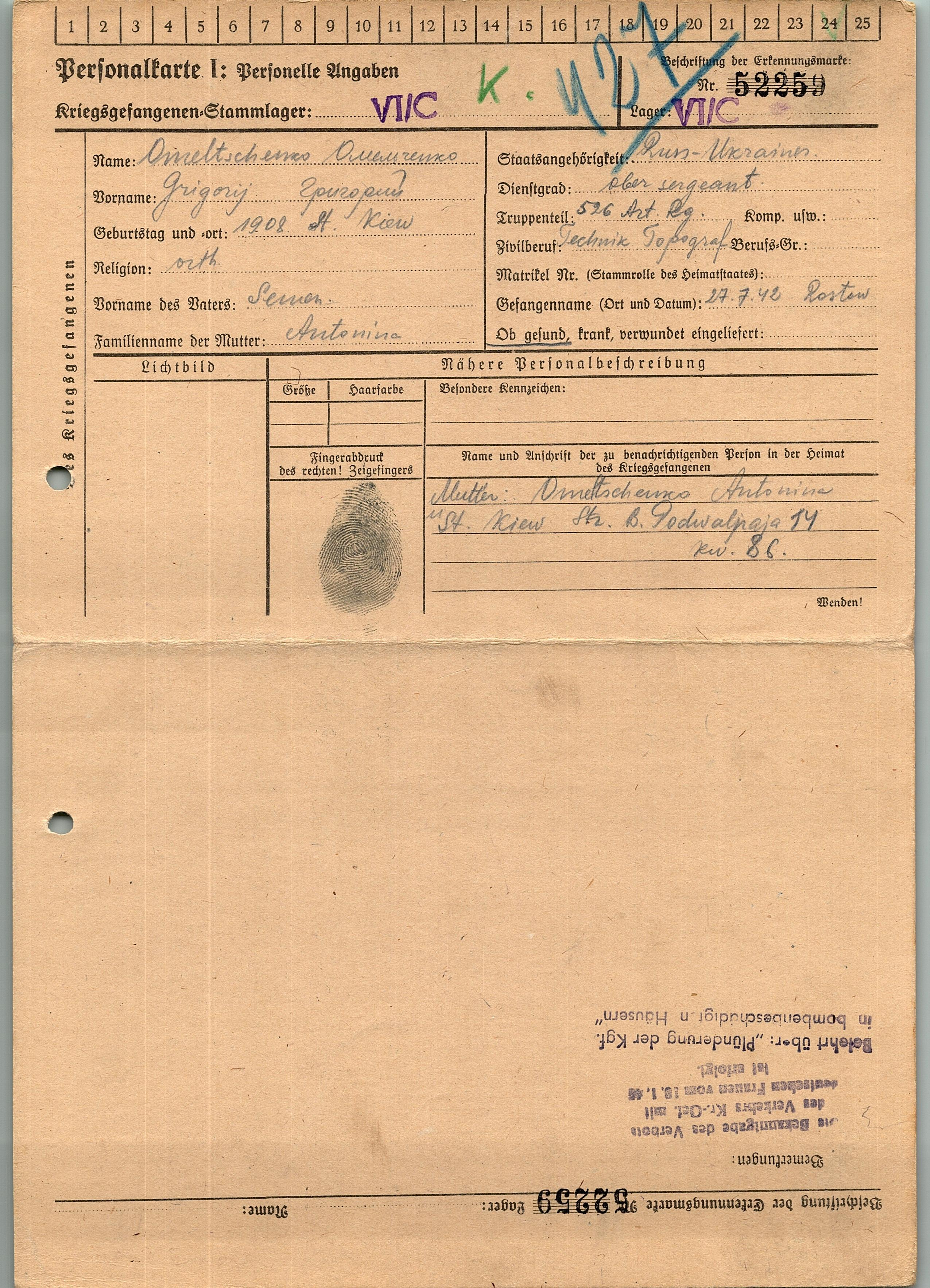 Военнопленные, трофейные карточки. Киевская обл.
