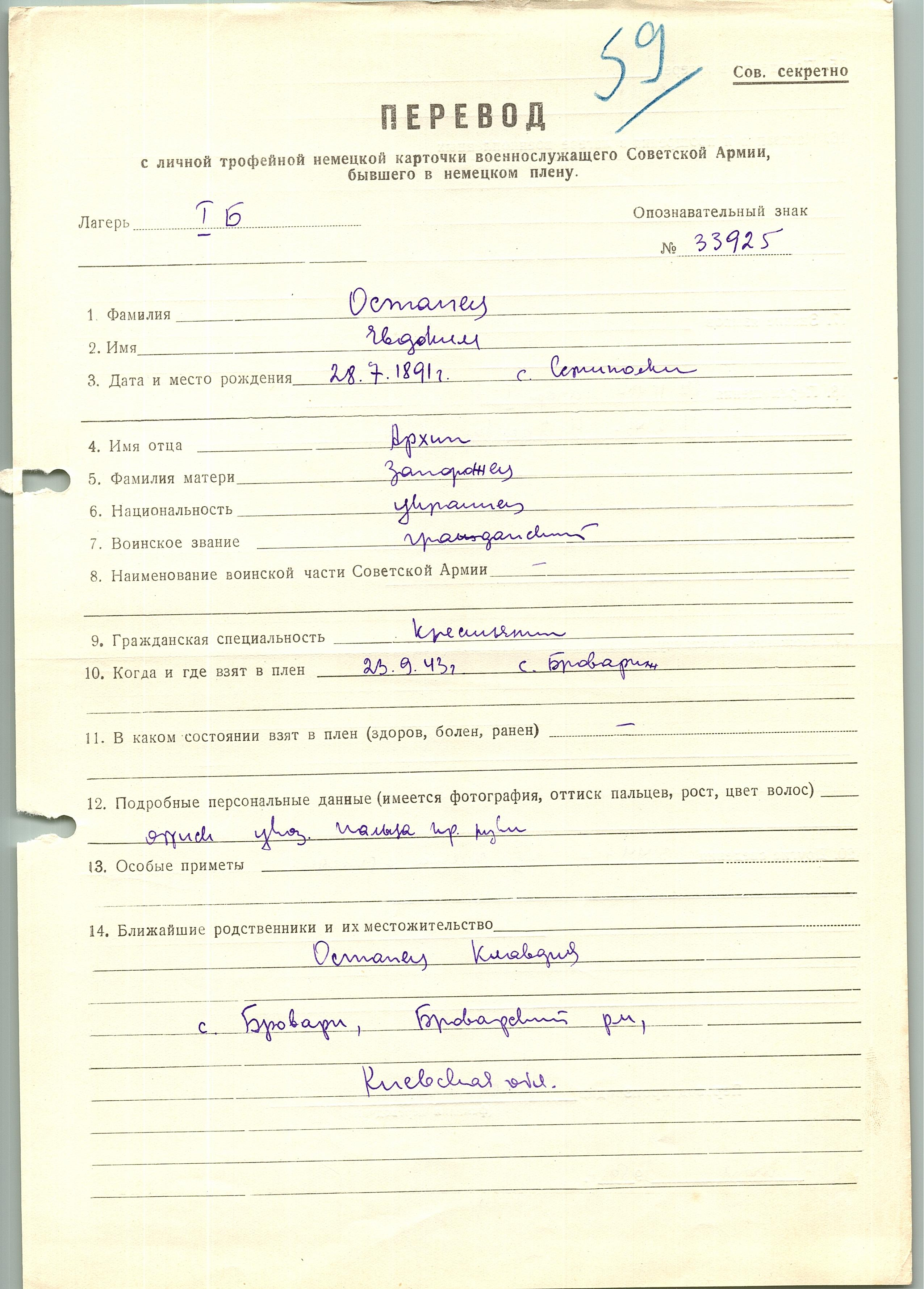 Военнопленные, трофейные карточки. Киевская обл.