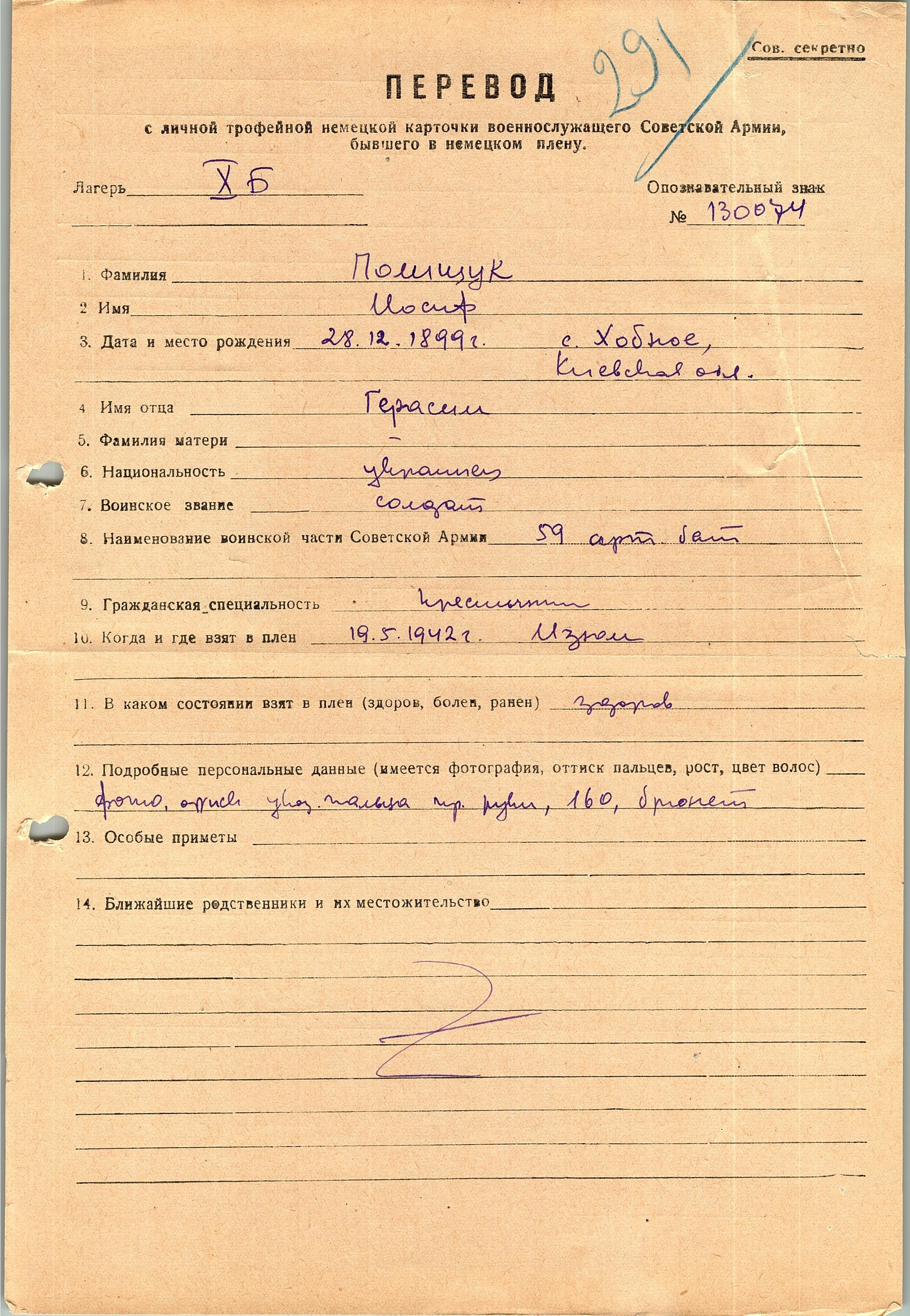 Военнопленные, трофейные карточки. Киевская обл.