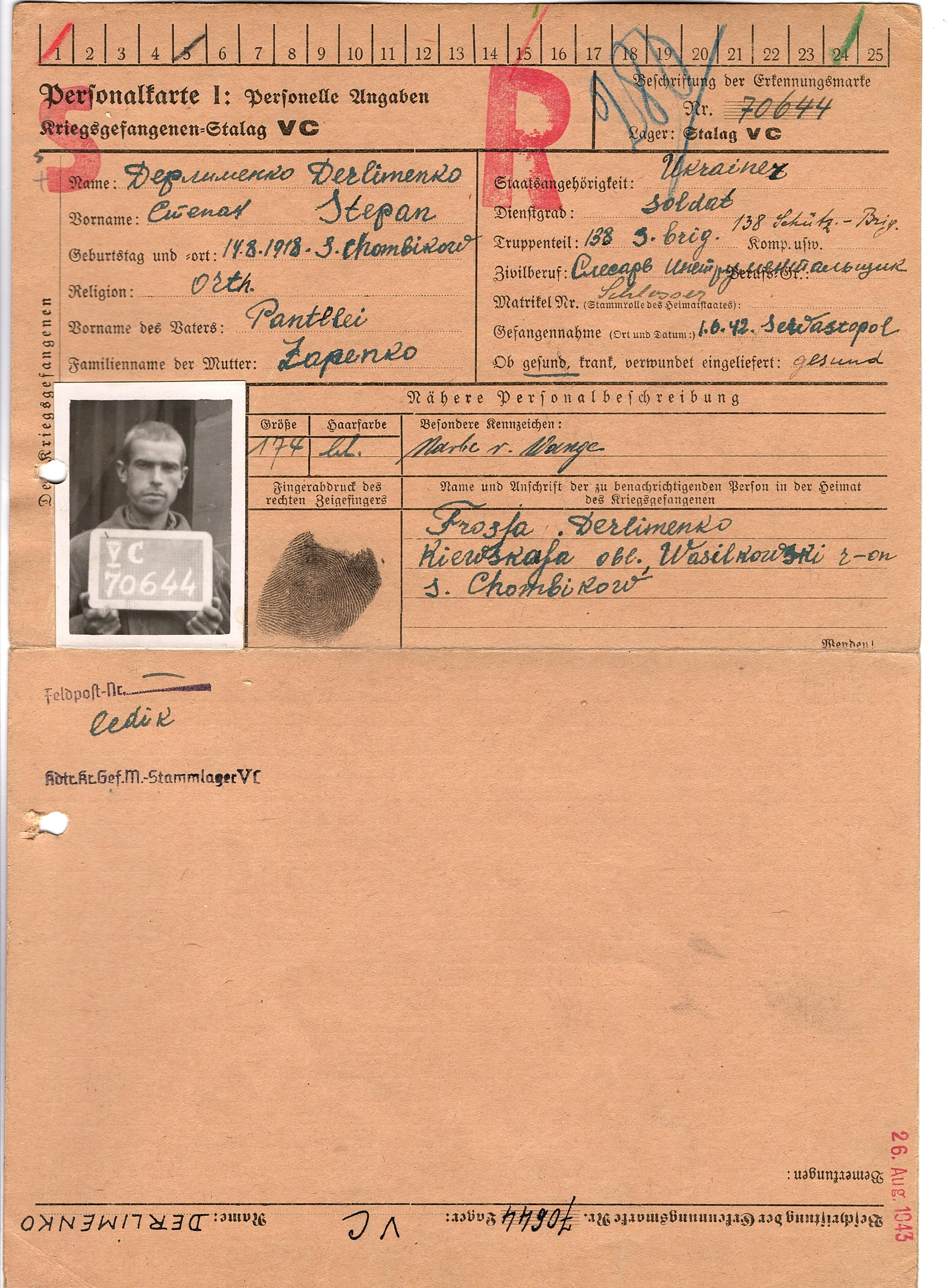 Военнопленные, трофейные карточки. Киевская обл.