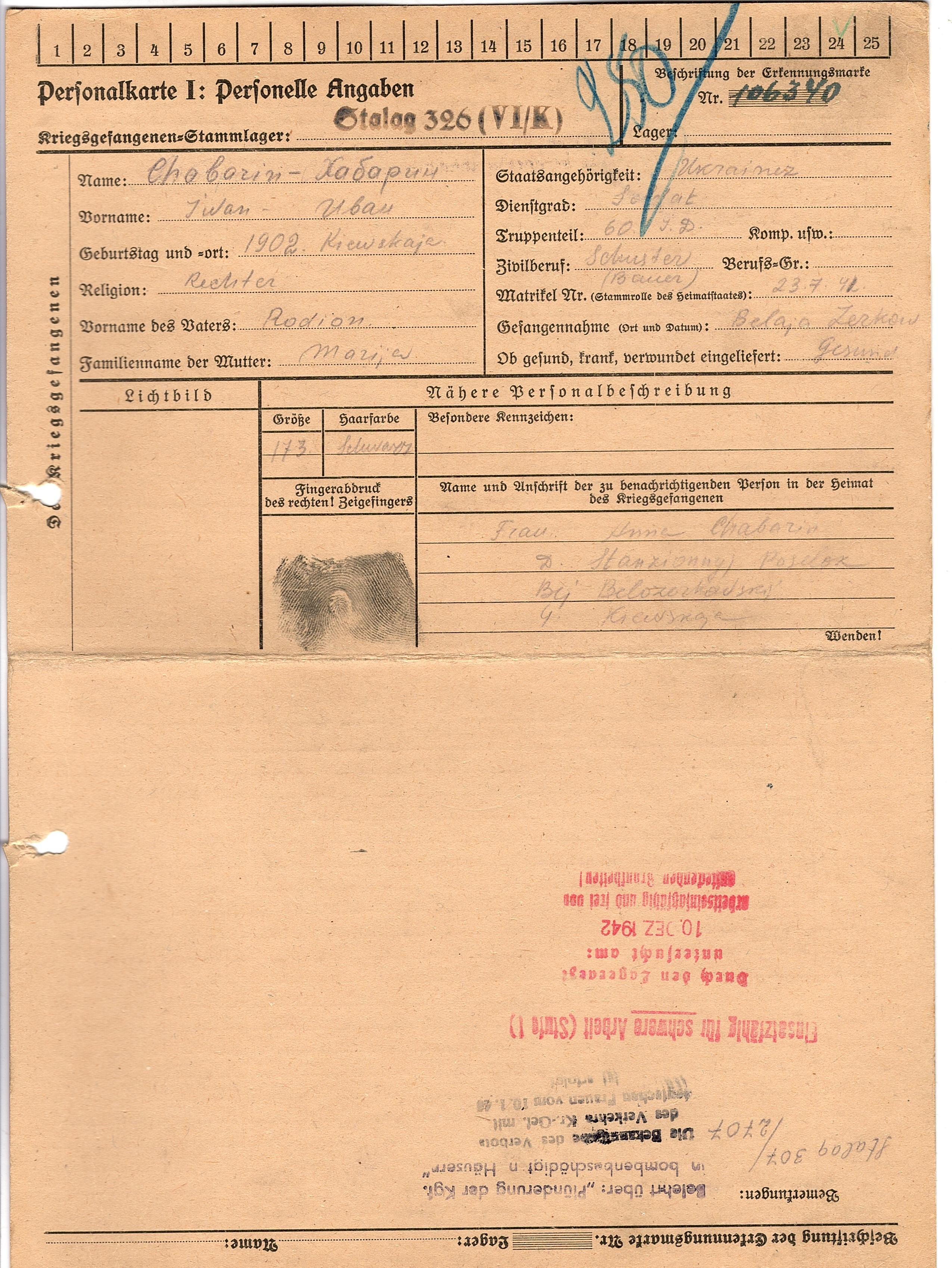 Военнопленные, трофейные карточки. Киевская обл.