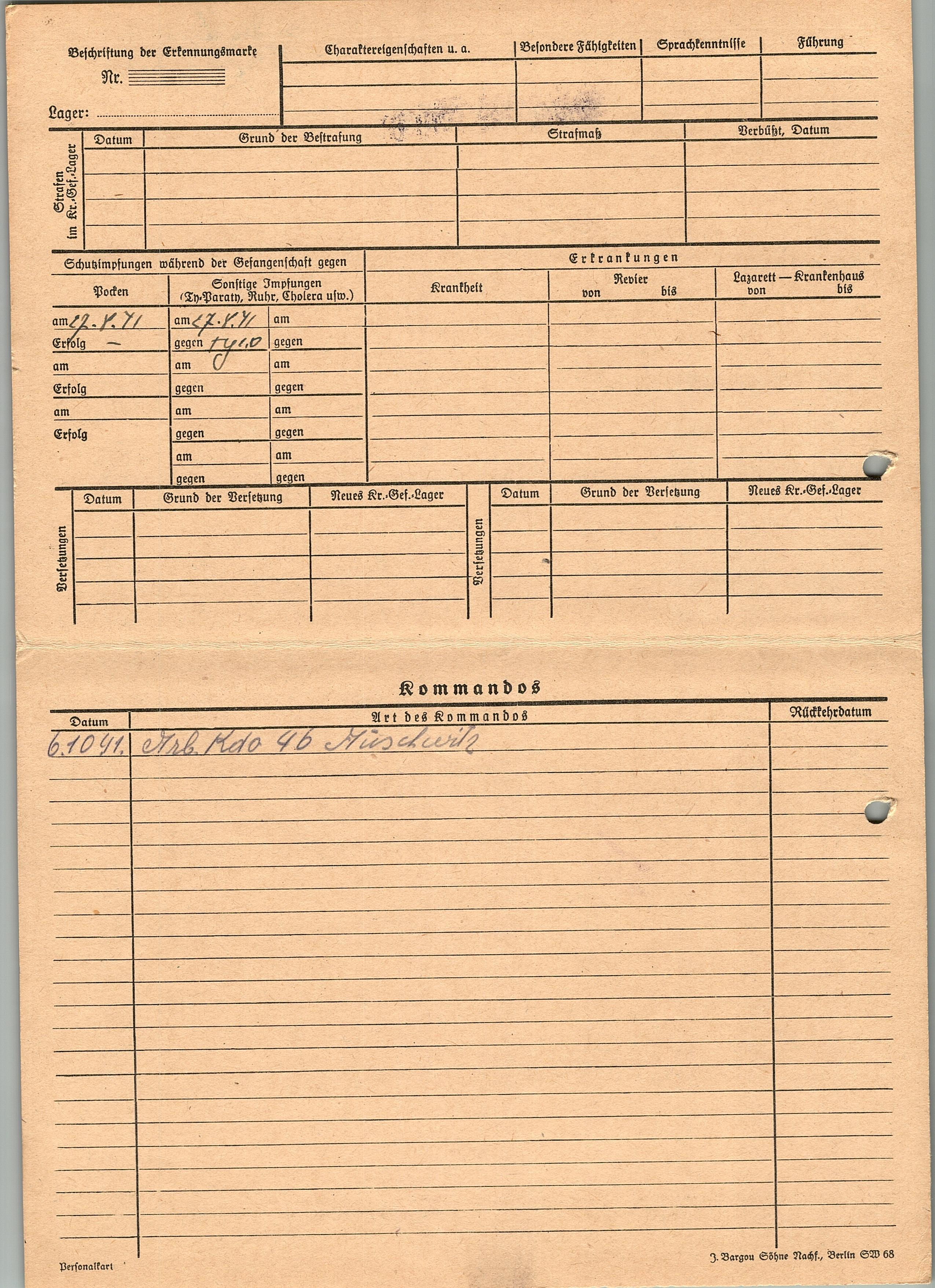 Военнопленные, трофейные карточки. Киевская обл.