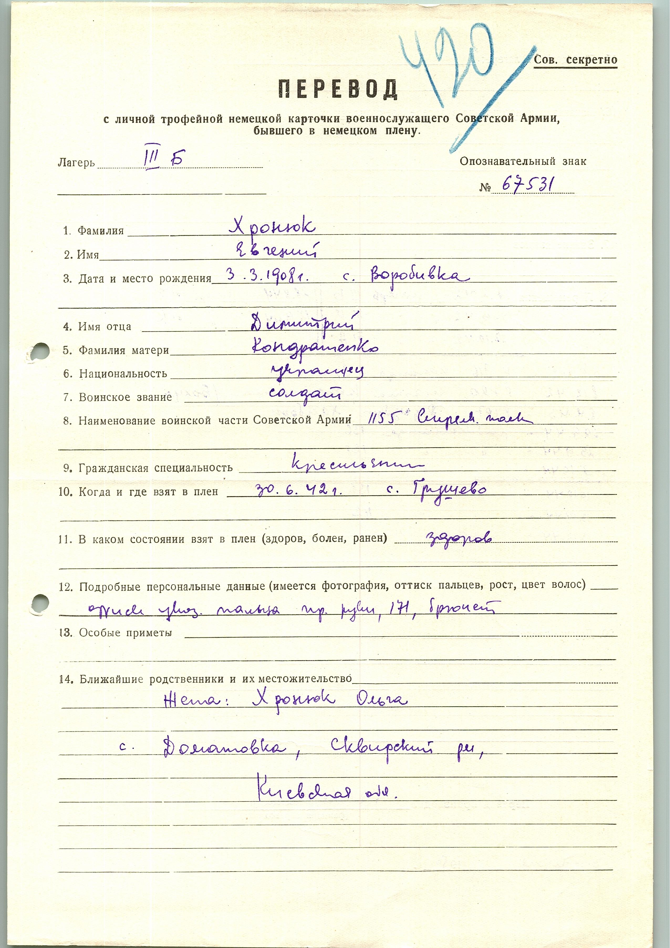 Военнопленные, трофейные карточки. Киевская обл.