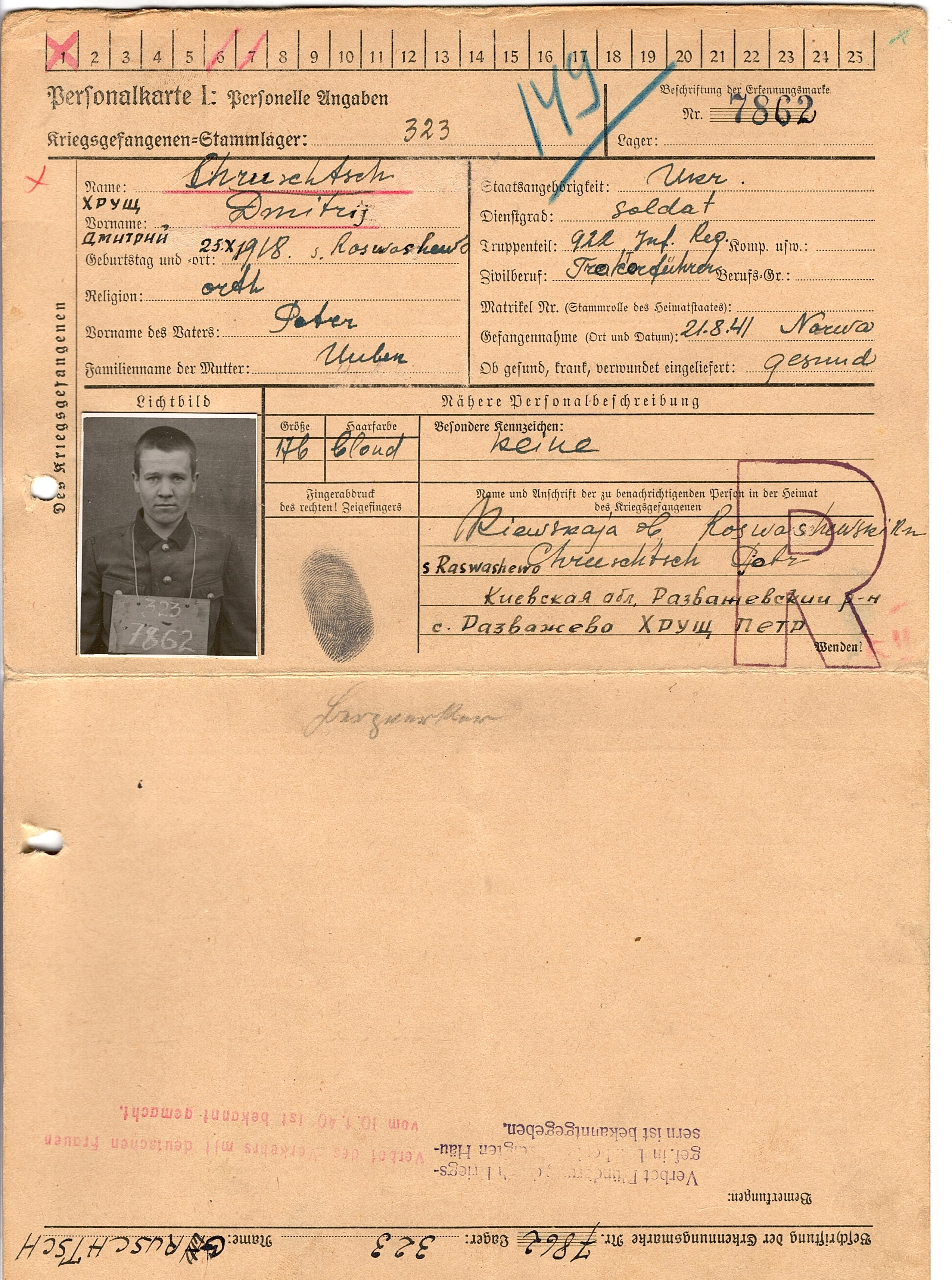 Военнопленные, трофейные карточки. Киевская обл.