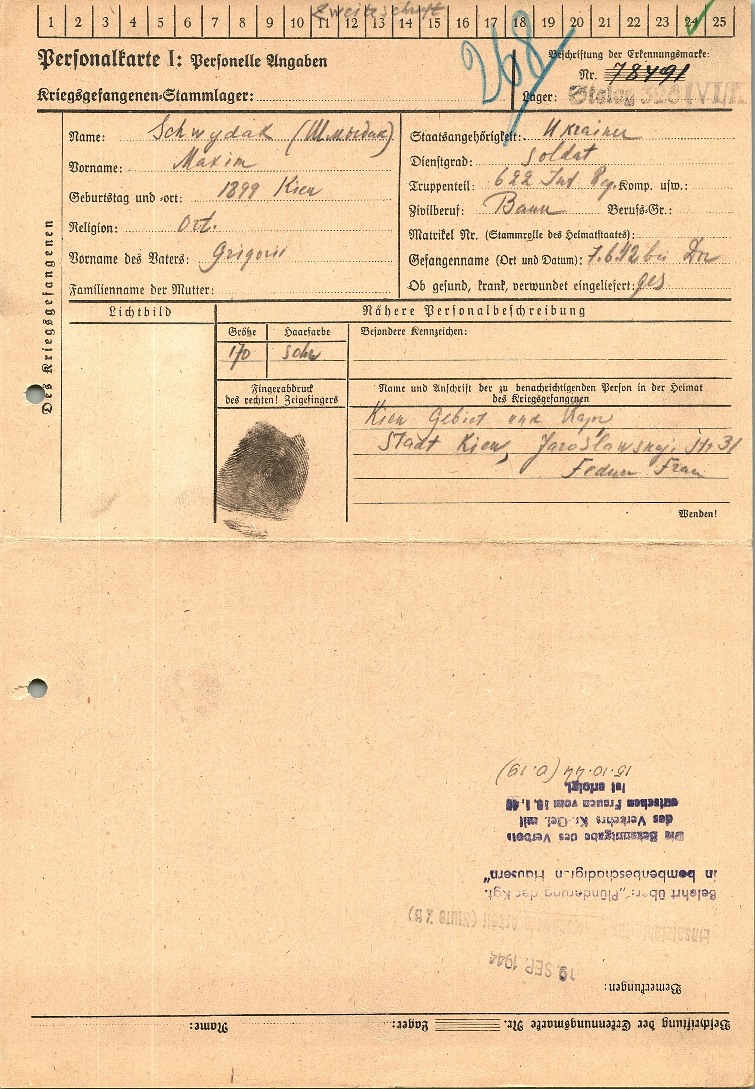 Военнопленные, трофейные карточки. Киевская обл.