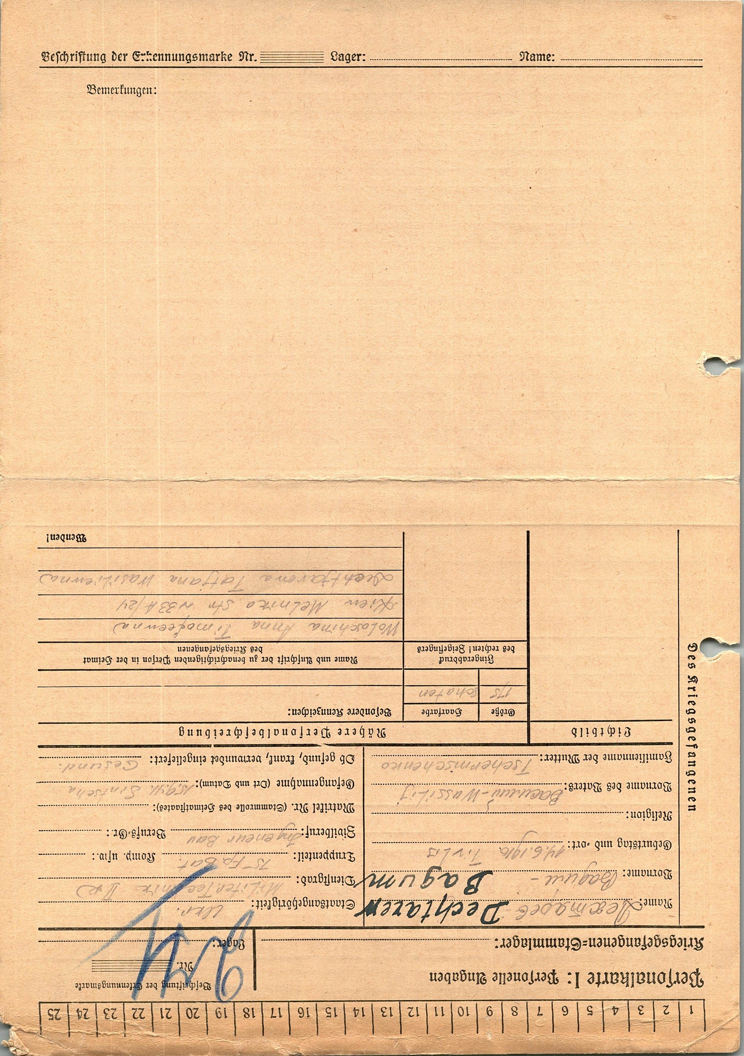 Военнопленные, трофейные карточки. Киевская обл.
