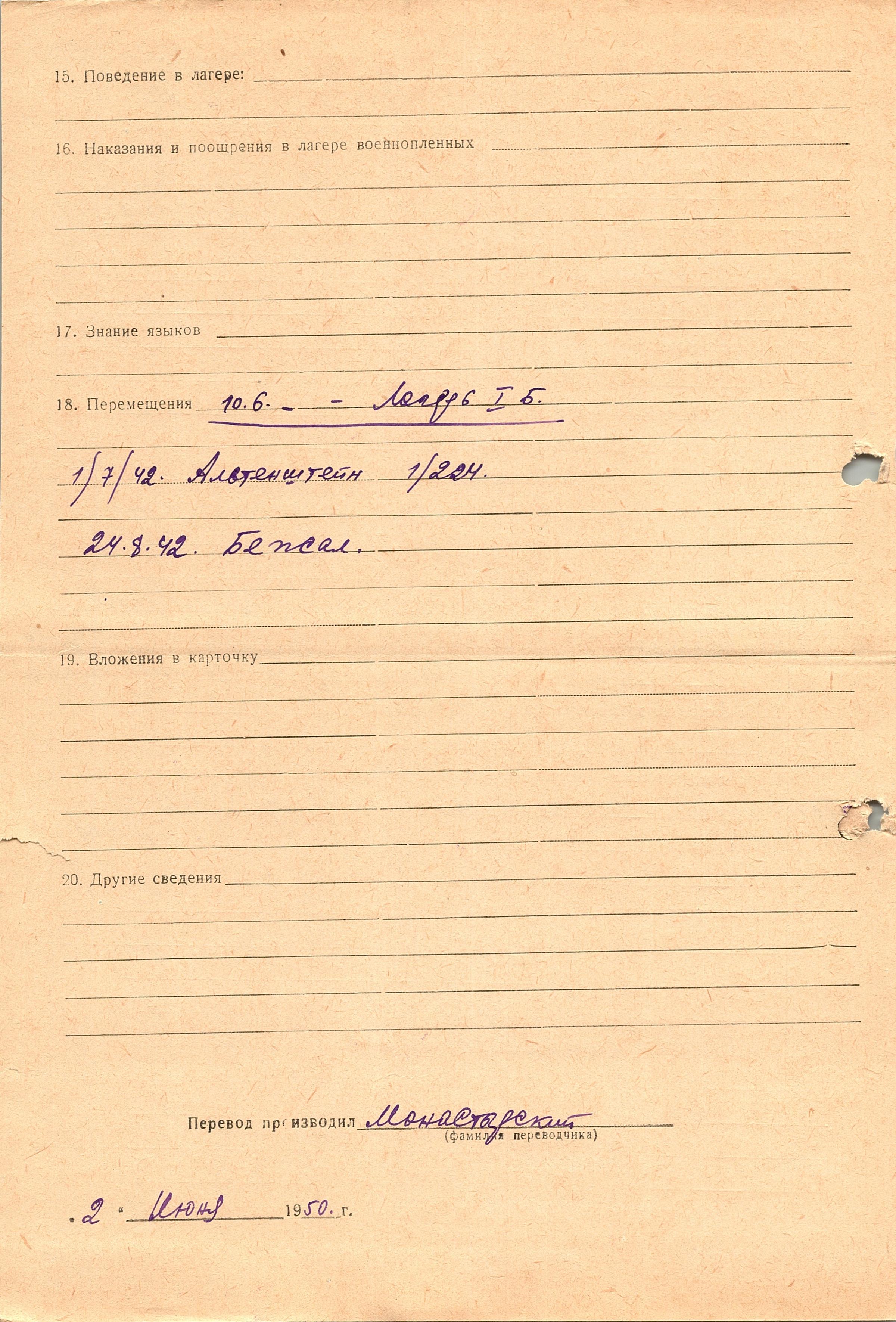 Мамаев Константин Никифорович, 05.05.1928 г. р., с. Ксенцы. Попал в плен 05.05.1942 г. во время полицейской облавы в шталаг XIII E. Десятого июня был перемещен в лагерь XVII A, 01.07.1942 г. - в Альтенштейн 1/204, 24.08.1942 г. бежал из плена.