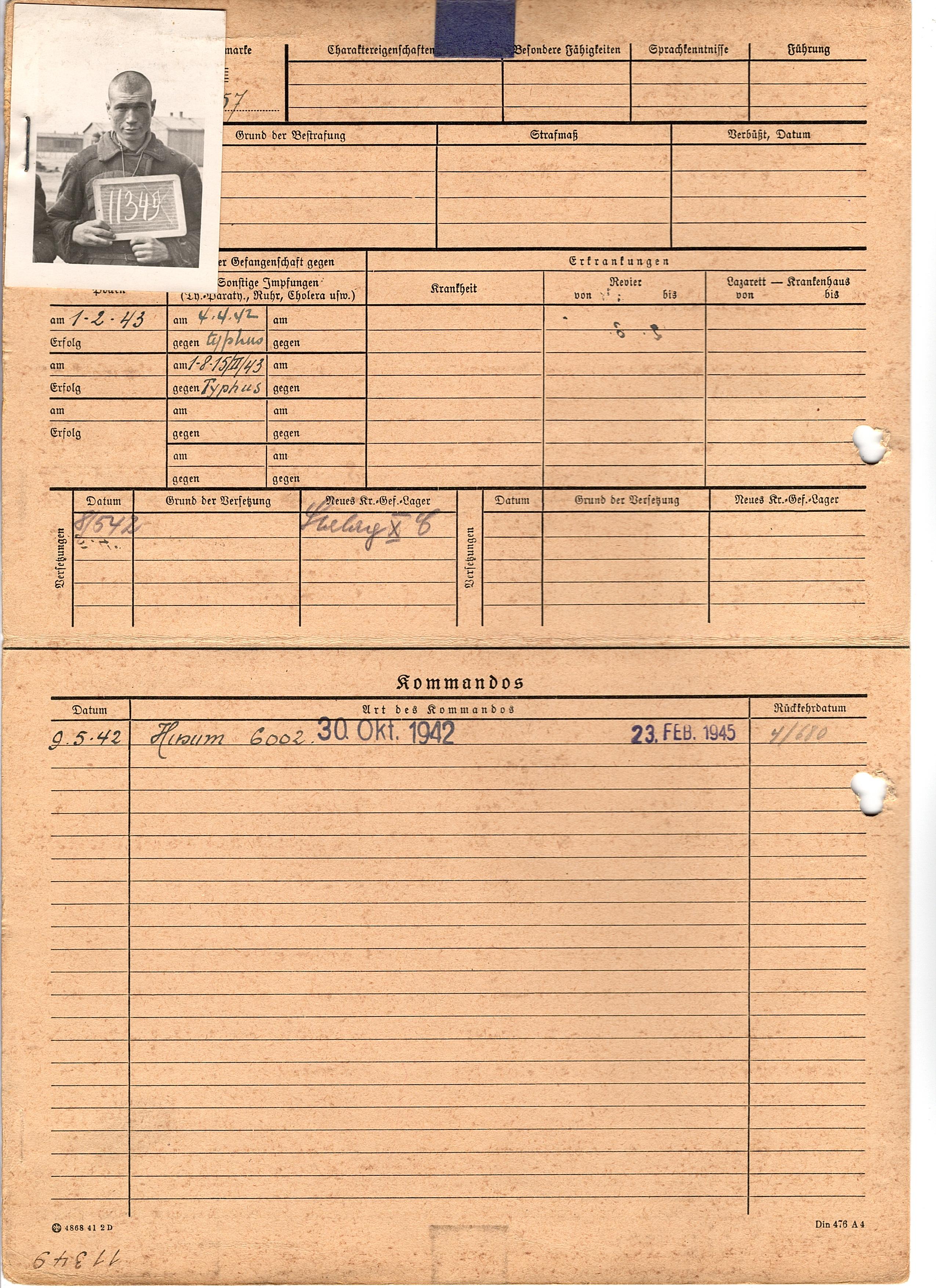 Невзгляд Кирилл Аксентиевич, 12.06.1912 г. р., с. Дмитровичи, Киевская область. Попал в плен 09.09.1941 г. в Скопцах, прифронтовый шталаг 357. 08.05.1942 г. был переведен в лагерь Х Б.