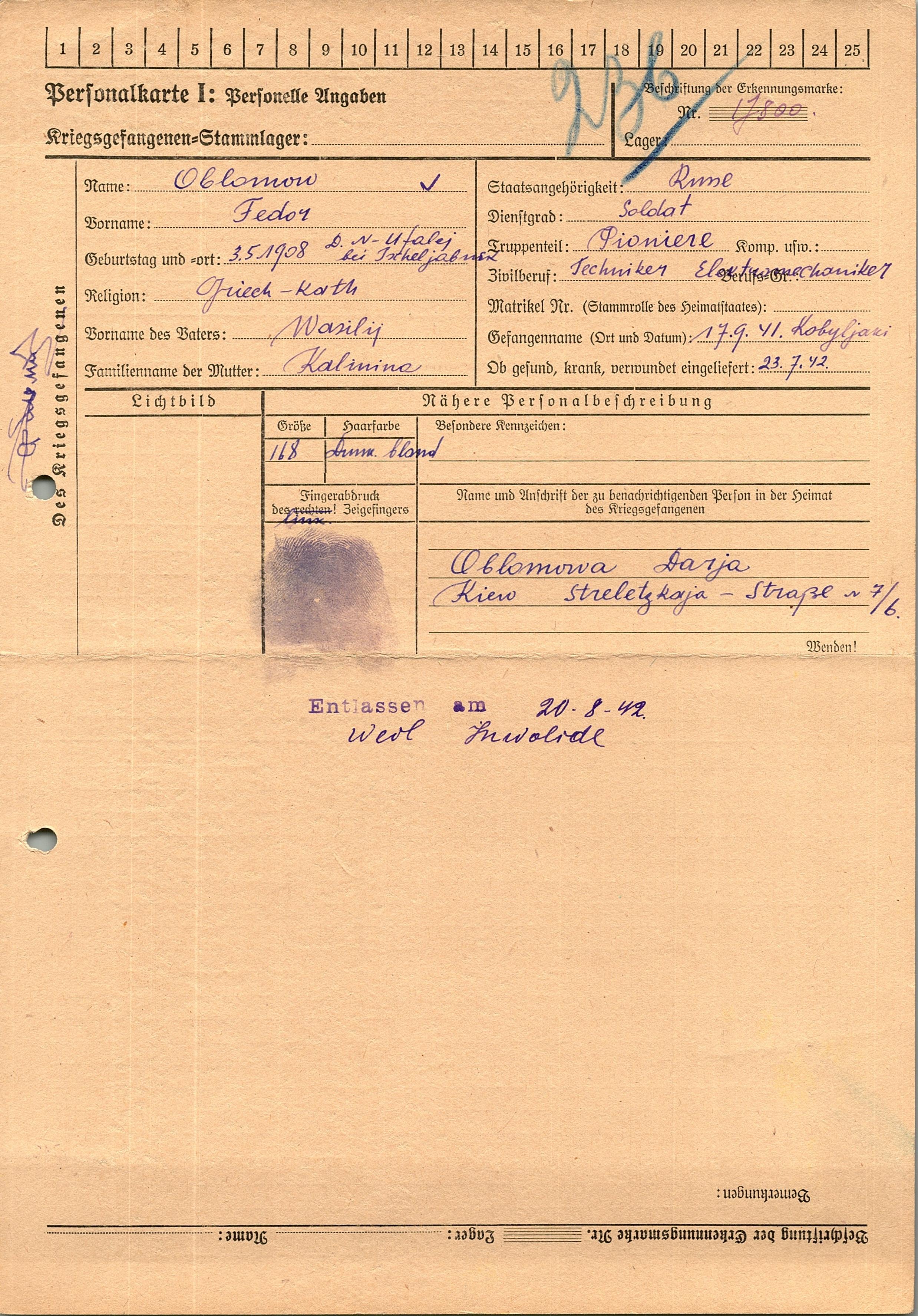 Военнопленные, трофейные карточки. Киевская обл.