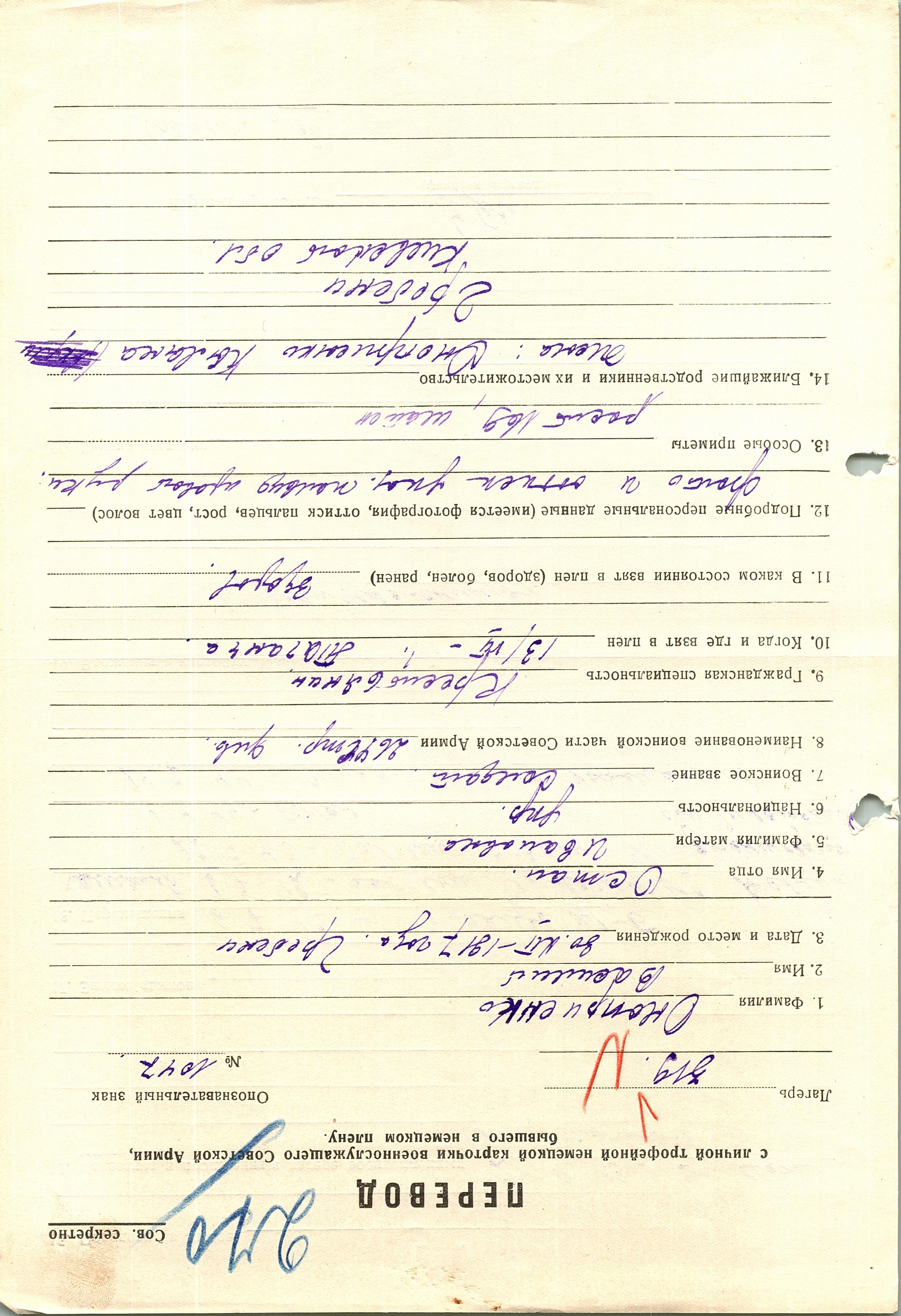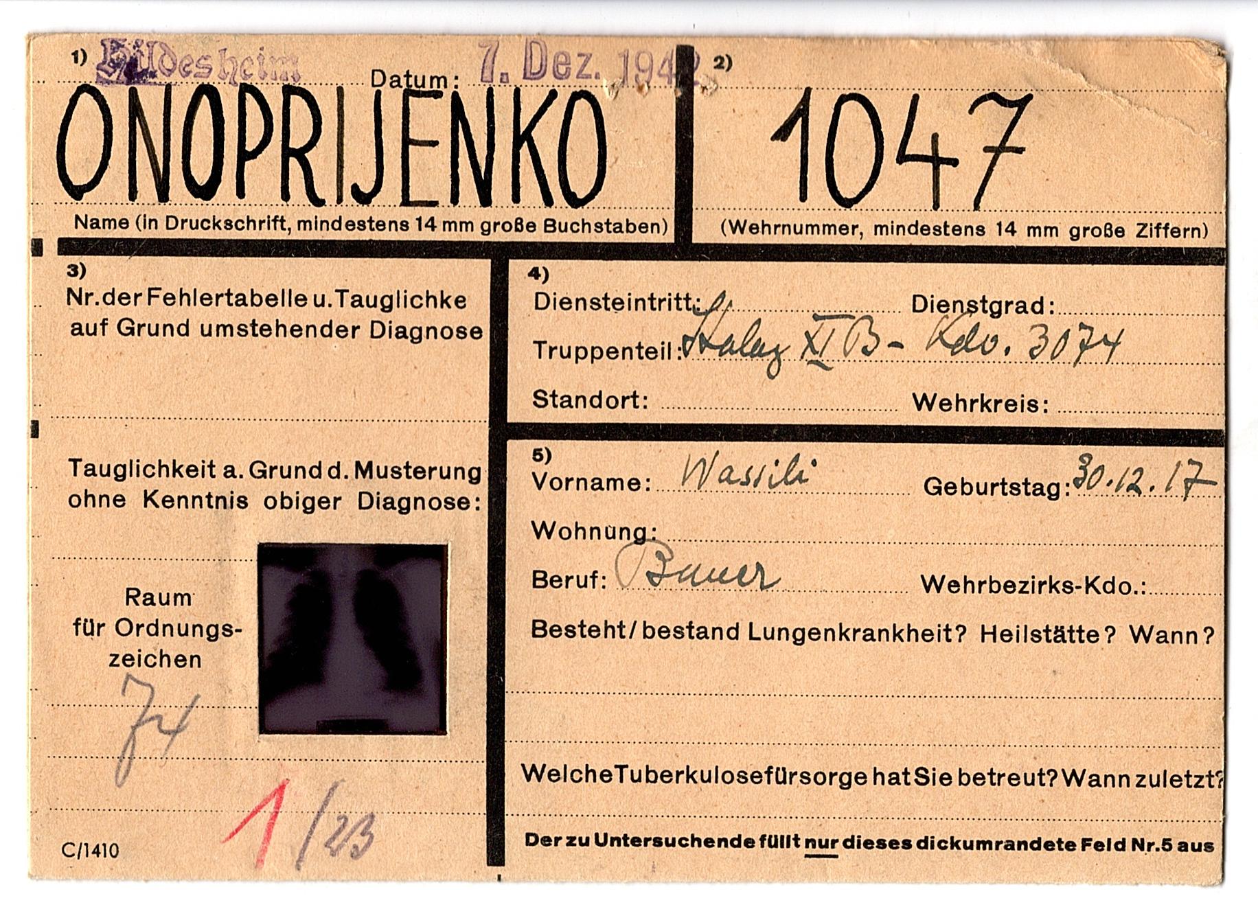 Онопренко Василий Остапович, 30.12.1917 г. р., с. Гребени. Рядовой, 264 стрелковый полк. Попал в плен 13-го июля в Таганче, шталаг 319. 06.07.1942 г. был переведен в лагерь XI Б, 14.04.1944 г. бежал из плена.