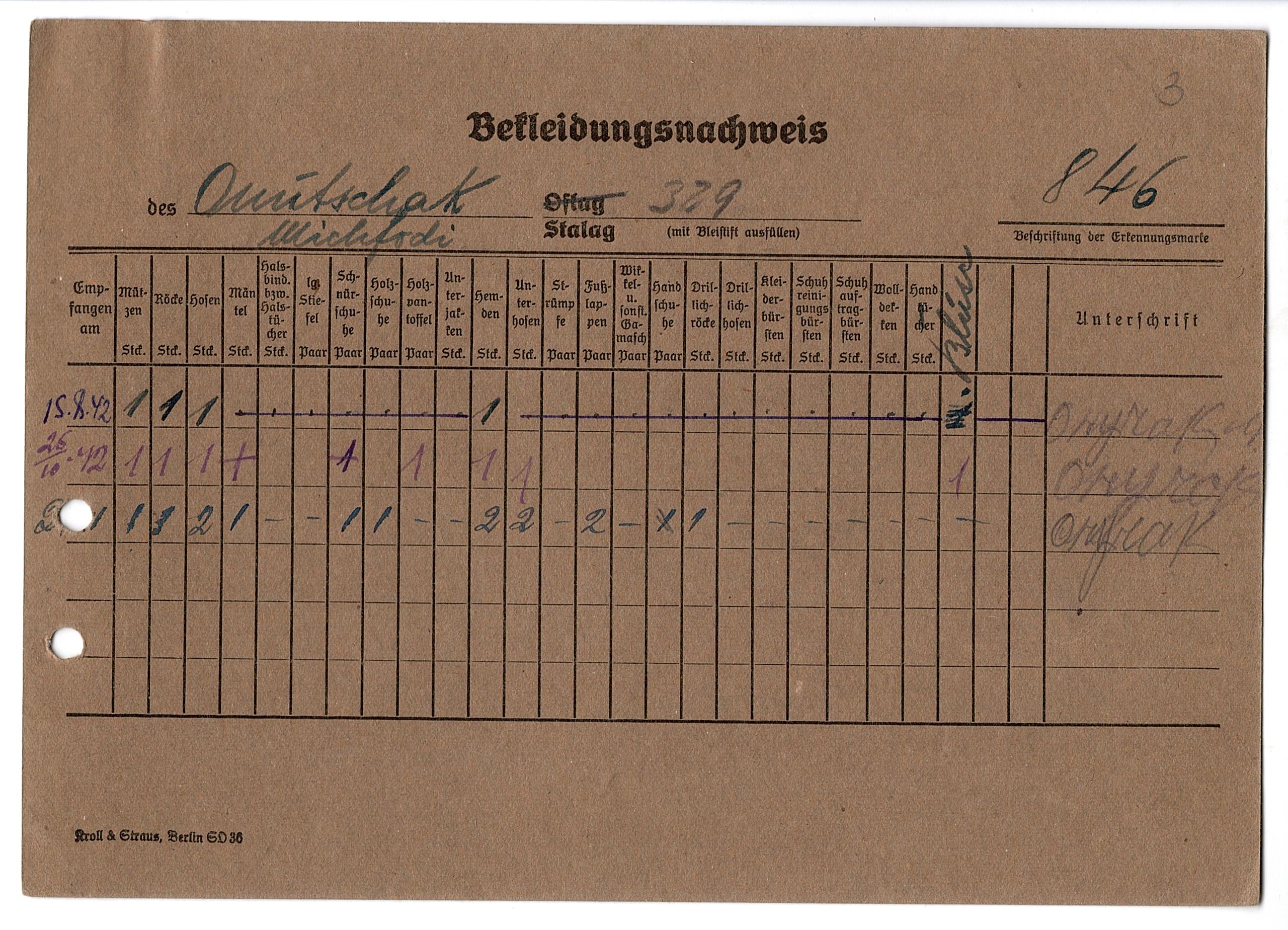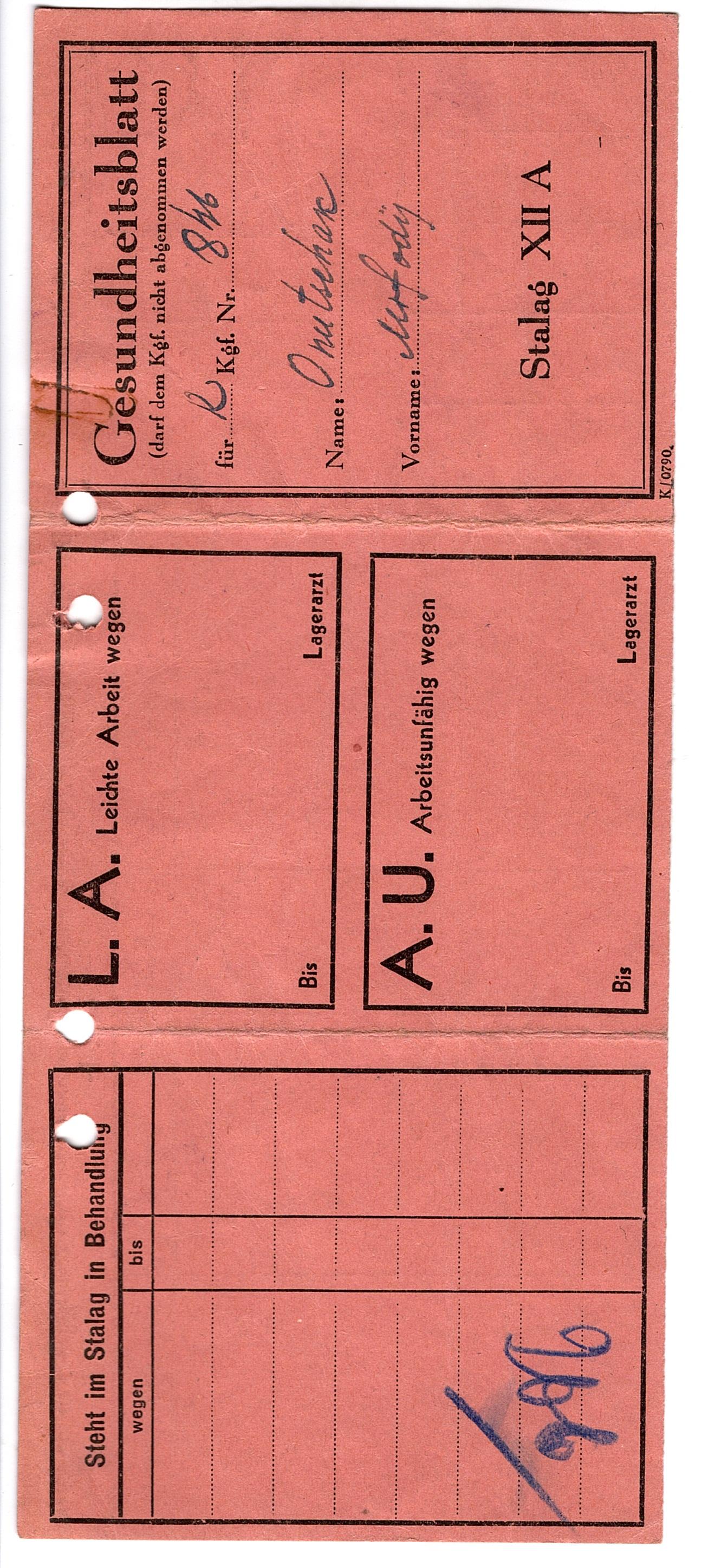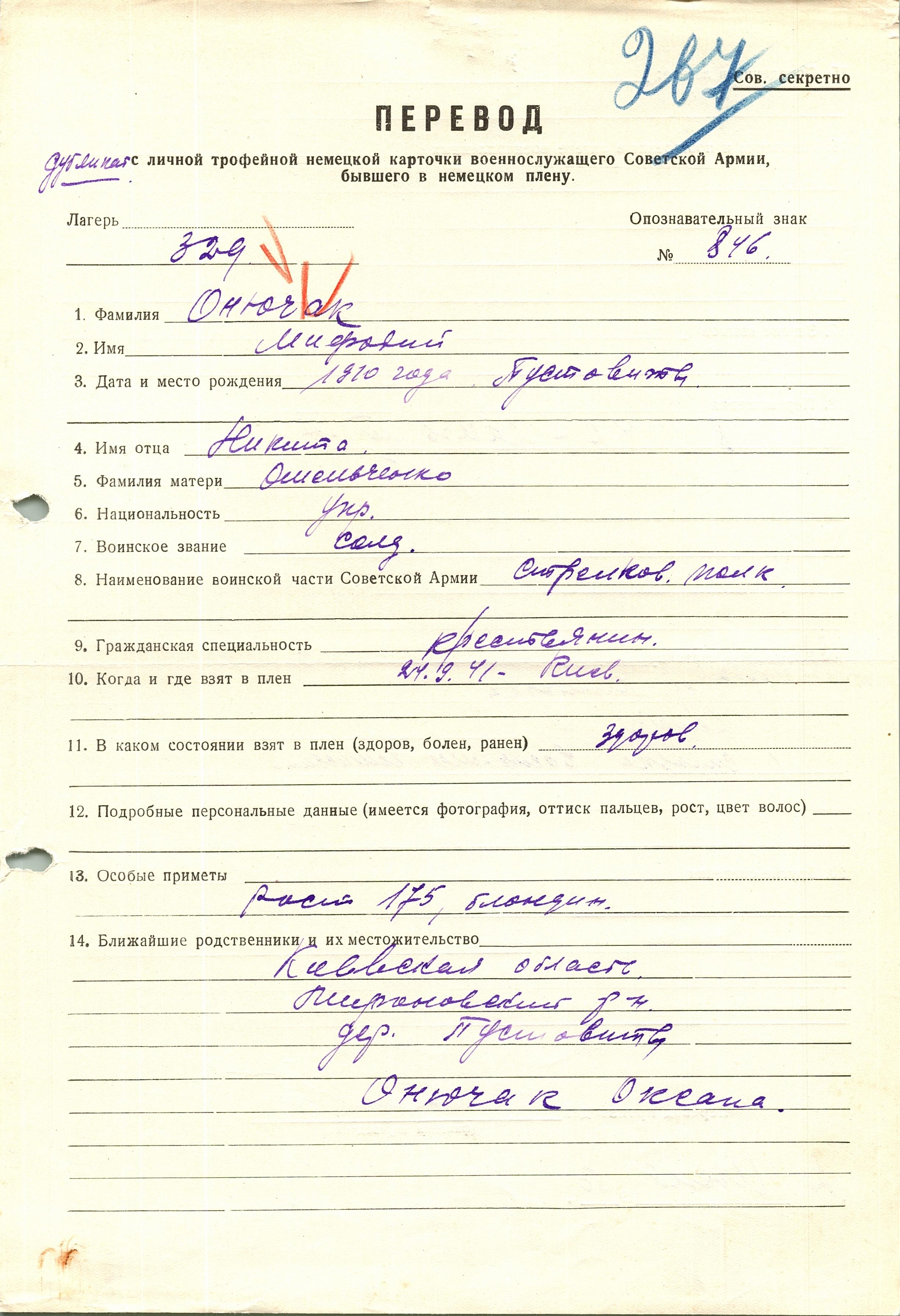 Онючак Мифодий Никитич, 1910 г. р., с. Пустовиты. Рядовой стрелкового полка. Попал в плен 24.09.1941 г. в Киеве, шталаг 329. 08.11.1942 г. был переведен в лагерь ХII А.