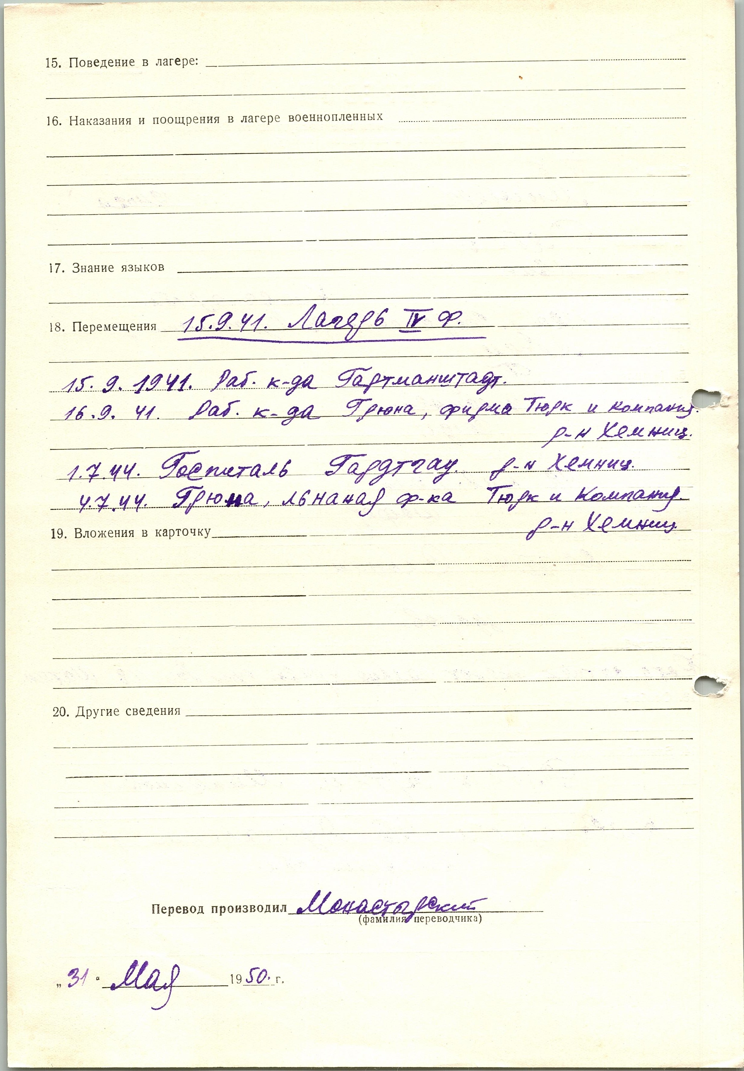 Военнопленные, трофейные карточки. Киевская обл.