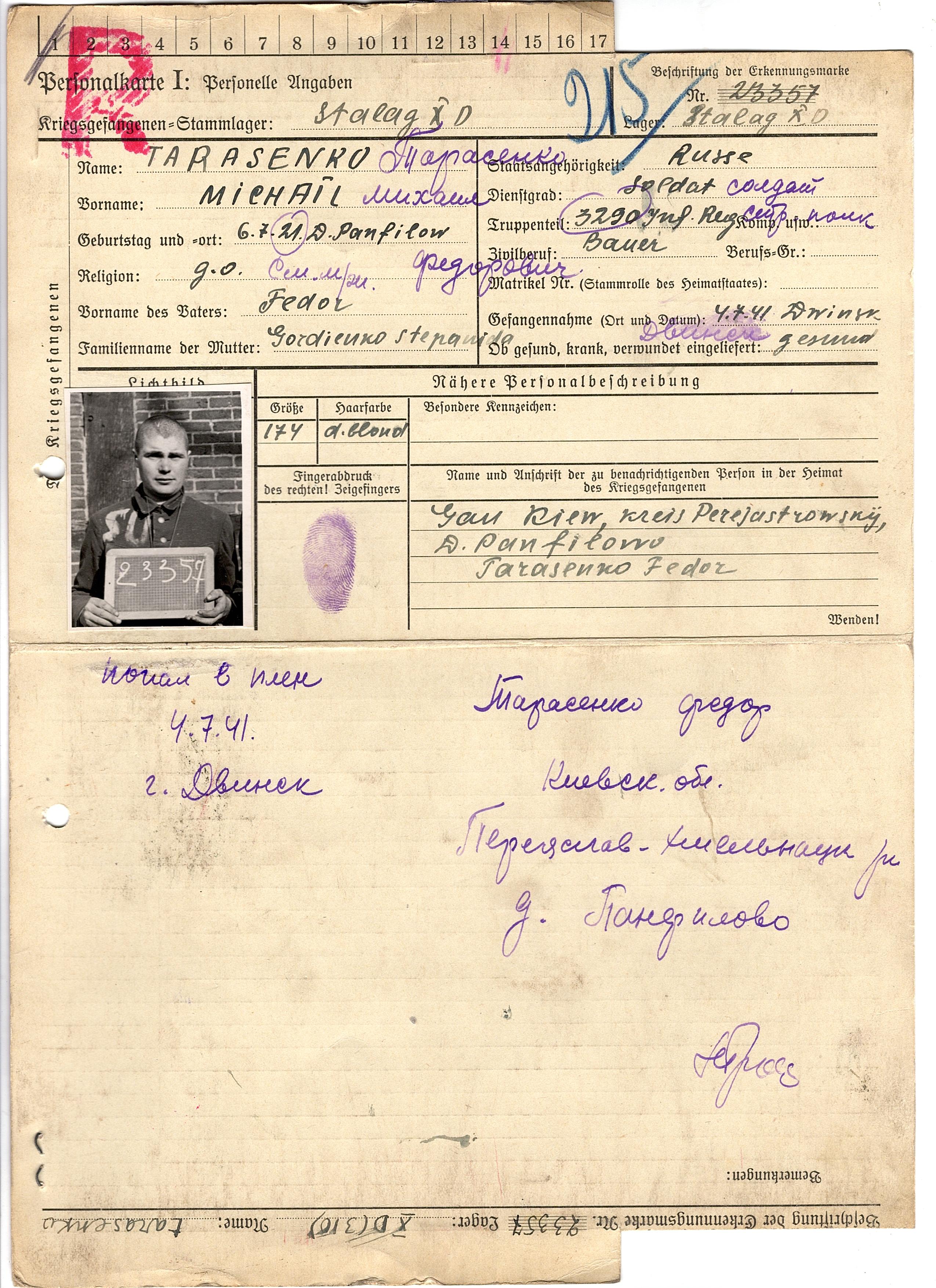 Военнопленные, трофейные карточки. Киевская обл.