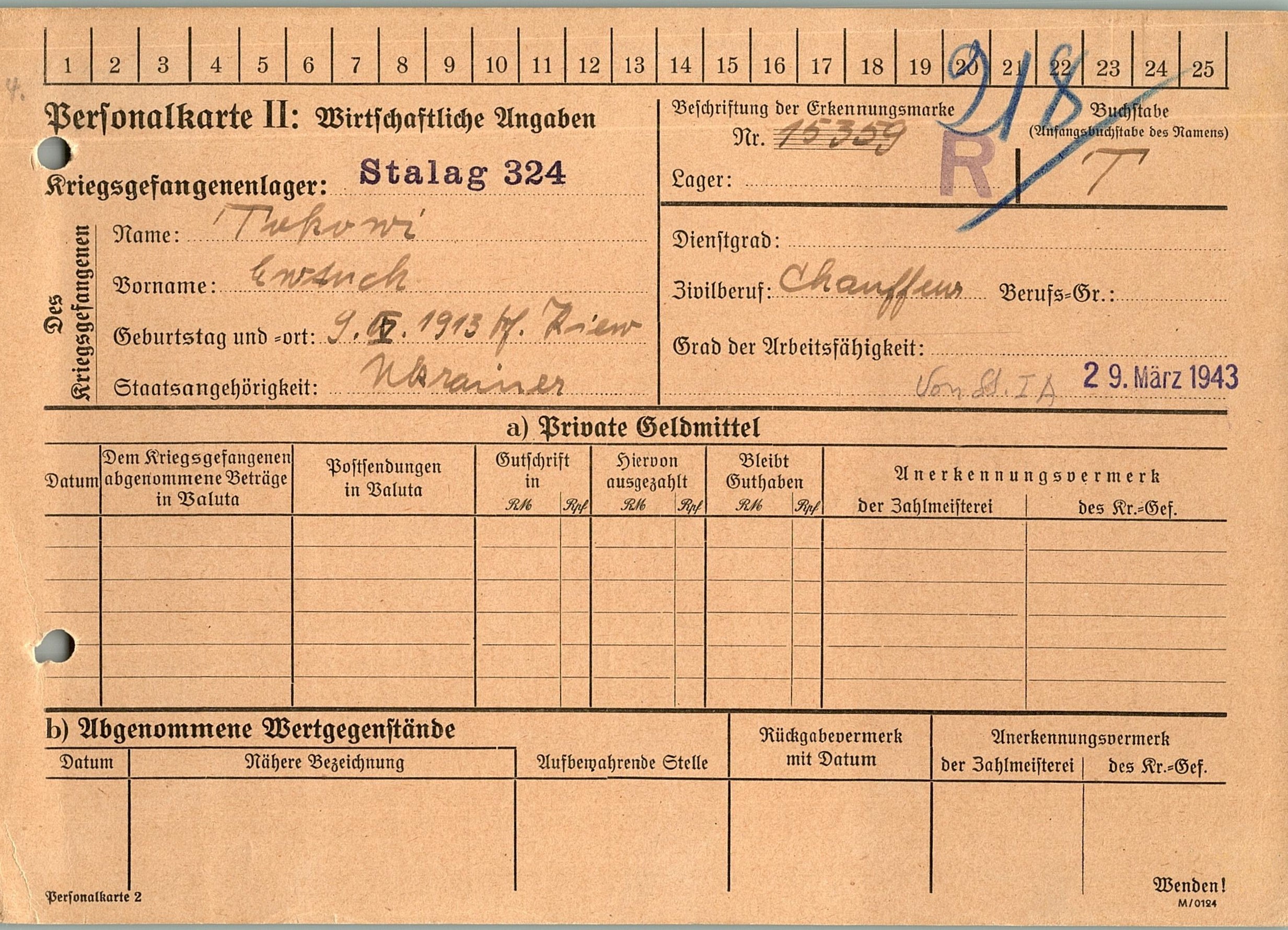 Токовый Евтух Абрамович, 09.04.1913 г. р., д. Тарасовцы, Киевская область. Рядовой, 771 артиллерия. Попал в плен в шталаг 324.