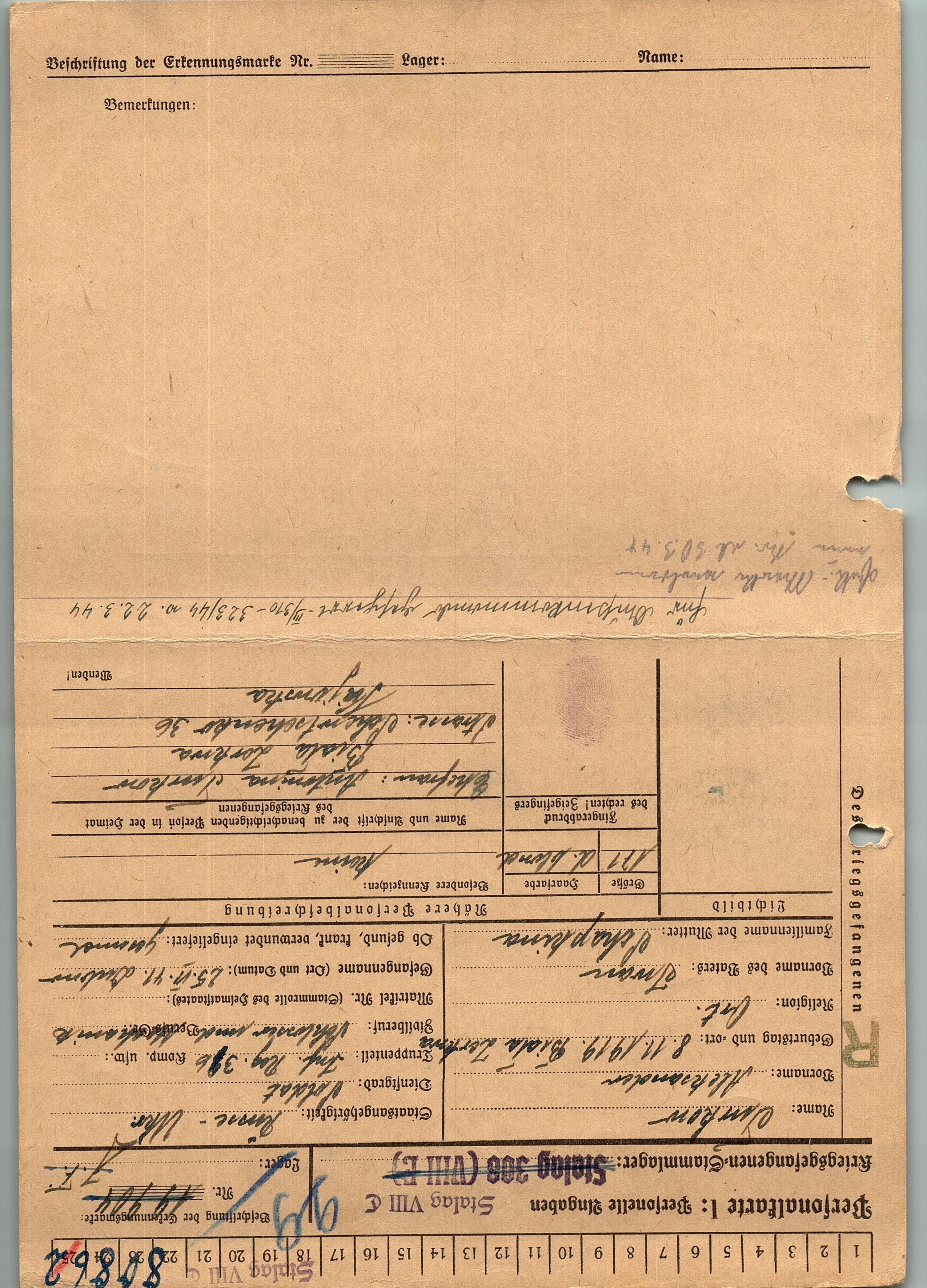 Военнопленные, трофейные карточки. Киевская обл.