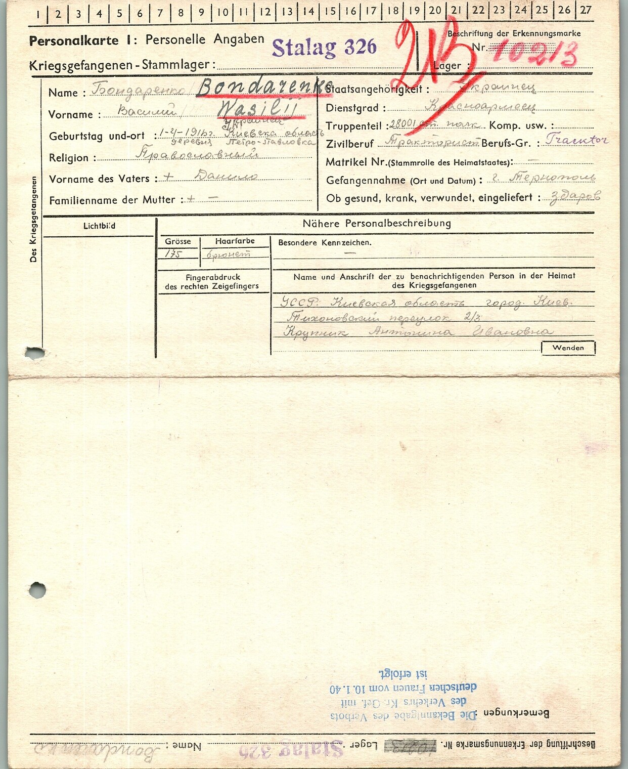 Военнопленные, трофейные карточки. Киевская обл.