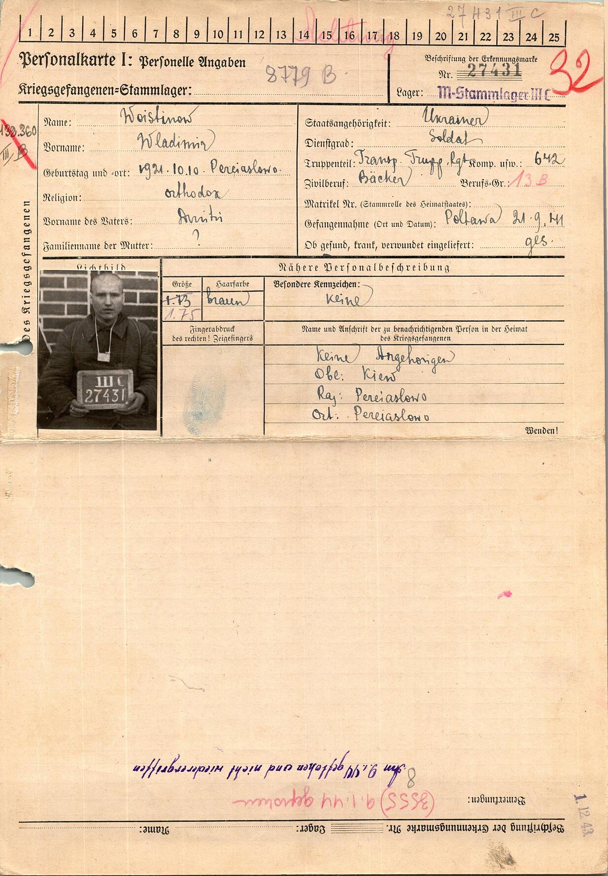 Военнопленные, трофейные карточки. Киевская обл.